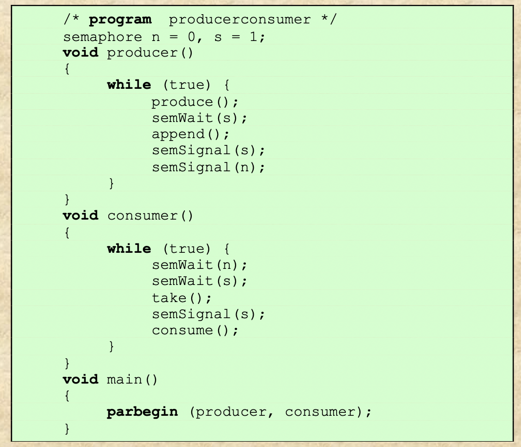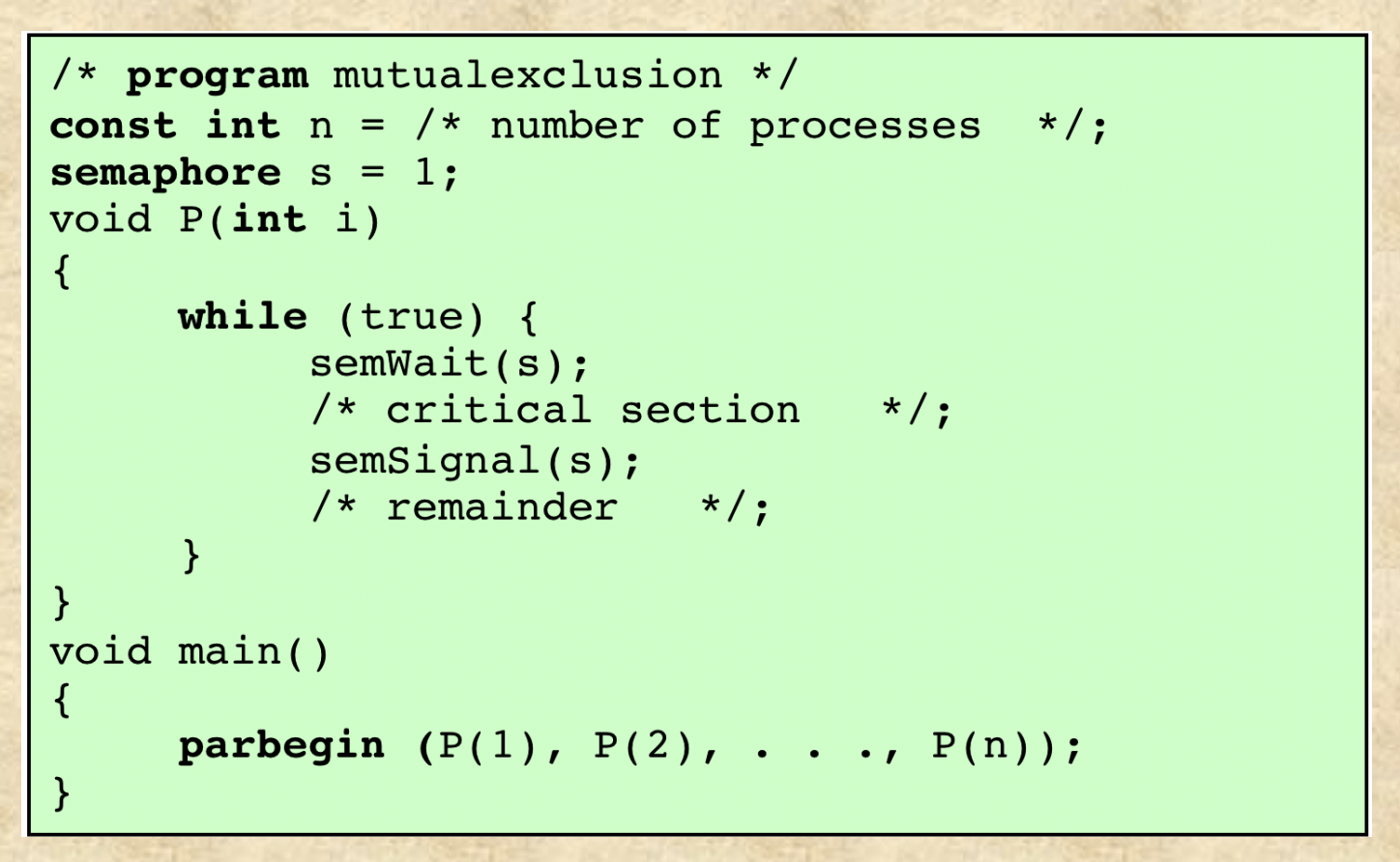 - parbegin(p(1), .., p(n));은 n개의 프로세스가 동시에 돌아가도록 하는 함수이다.
