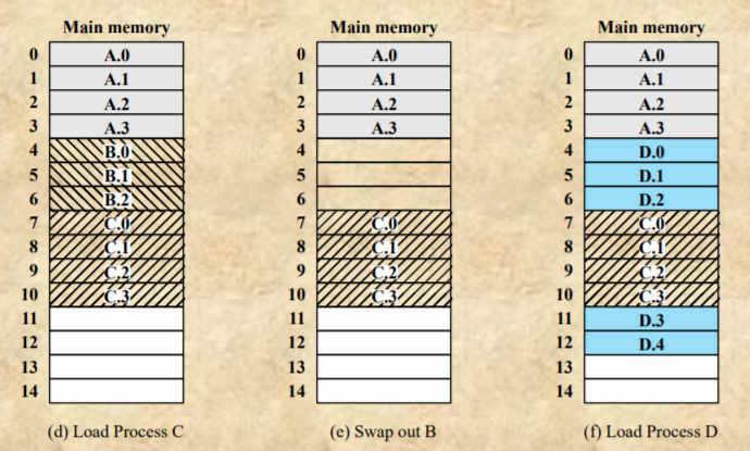 - 하지만 메모리가 swap되는 과정에서 중간중간 사용하기 애매한 메모리 공간들이 생기는데 이를 external fragmentation이라고 한다.