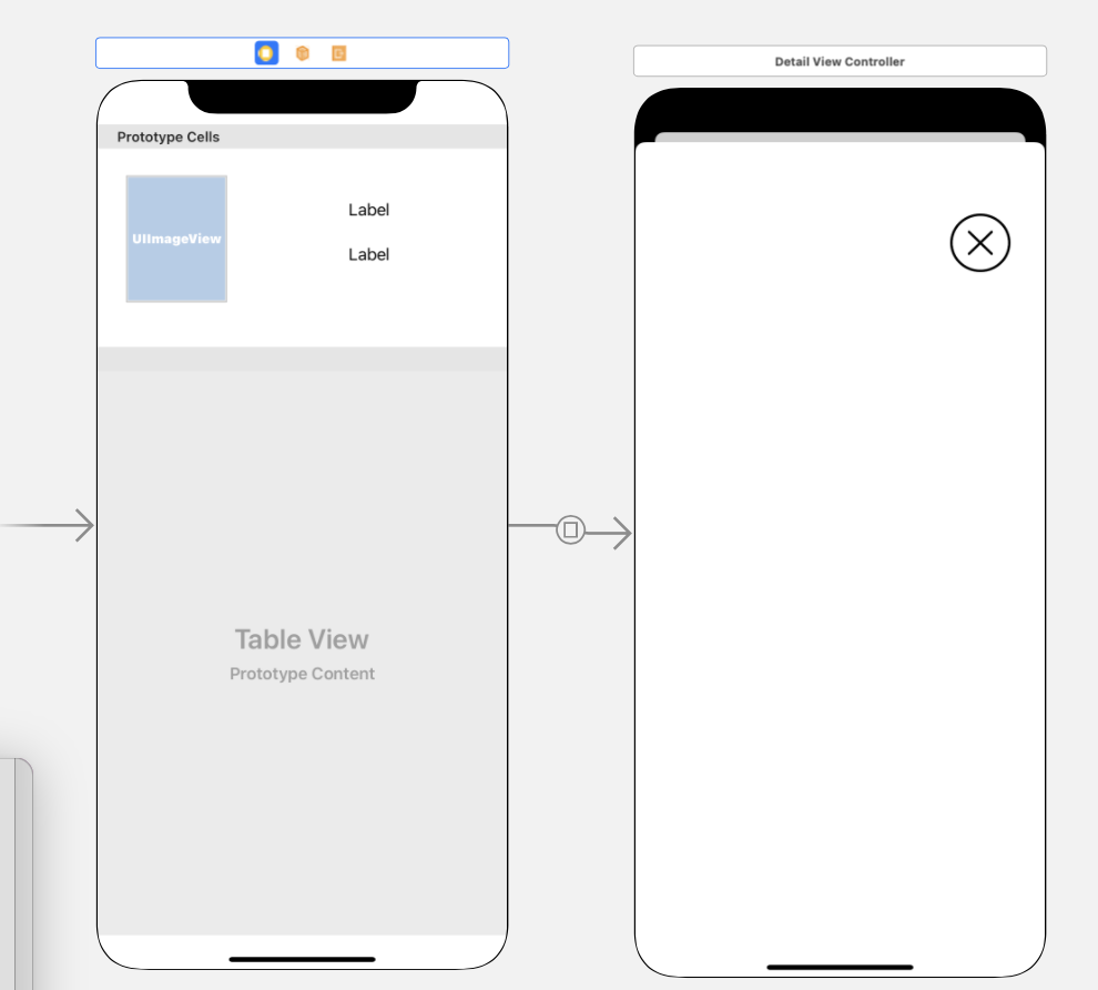 - 이번에는 셀을 클릭하면 새로운 view controller 화면이 modal형식으로 나타나도록 해보자.