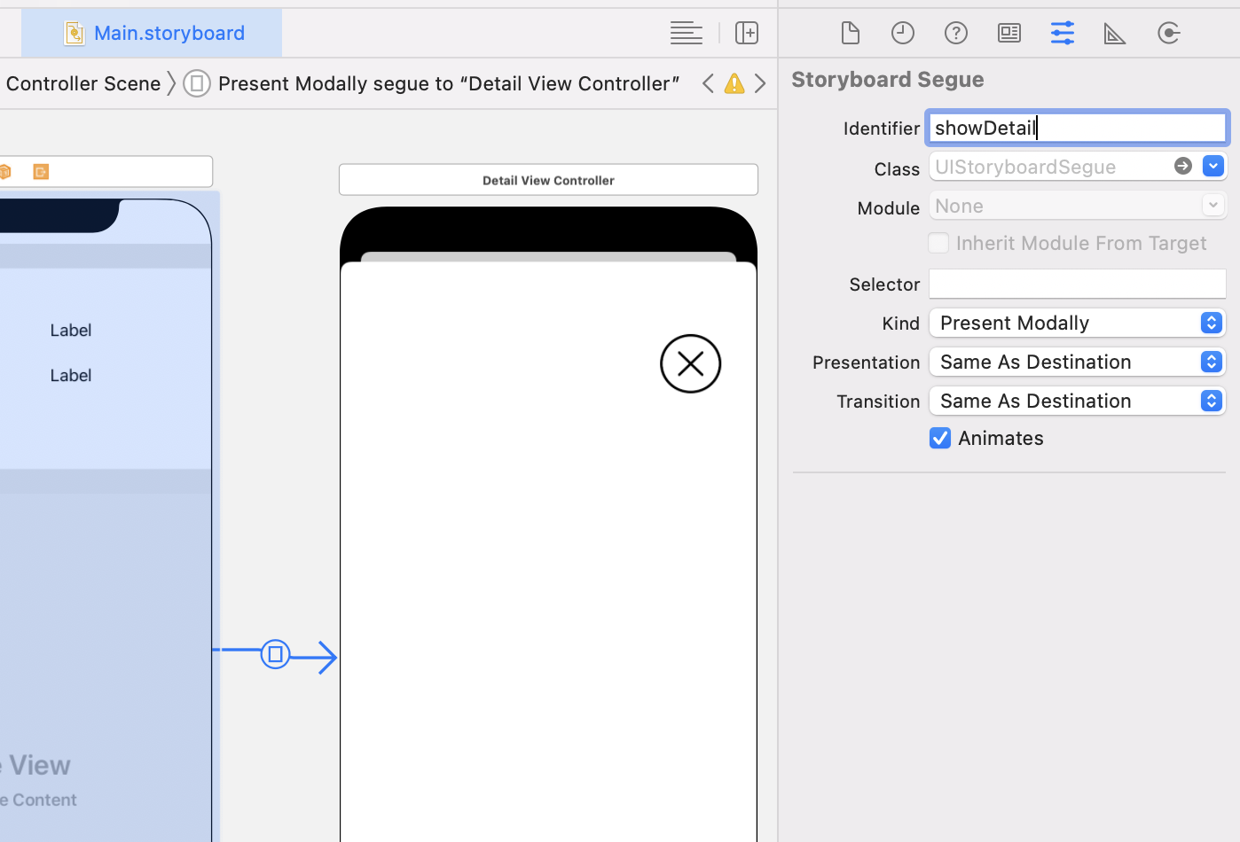 if segue.identifier == "showDetail" {