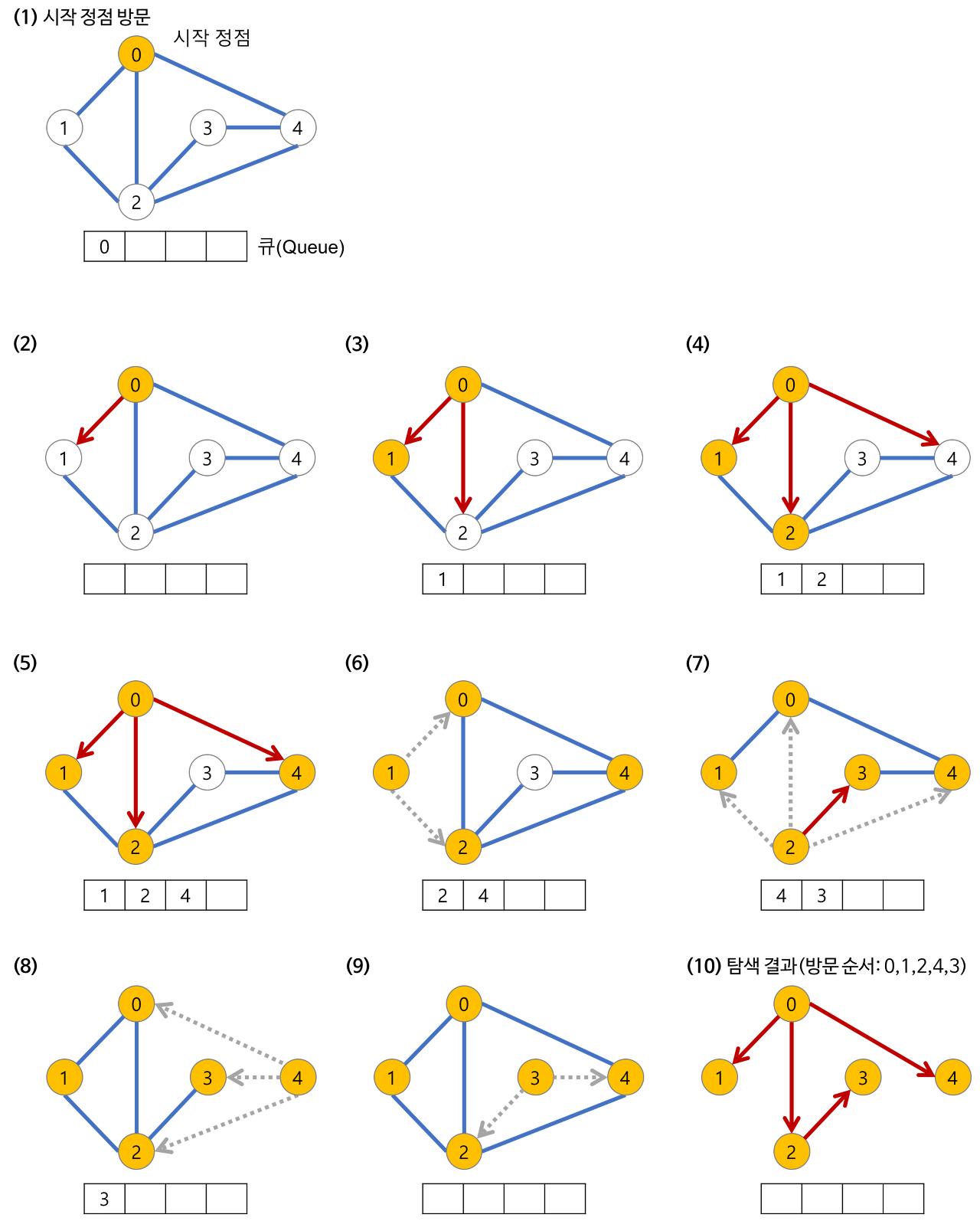 3. 큐에 있는 위치들을 시작점으로 해서 1~2를 반복한다.