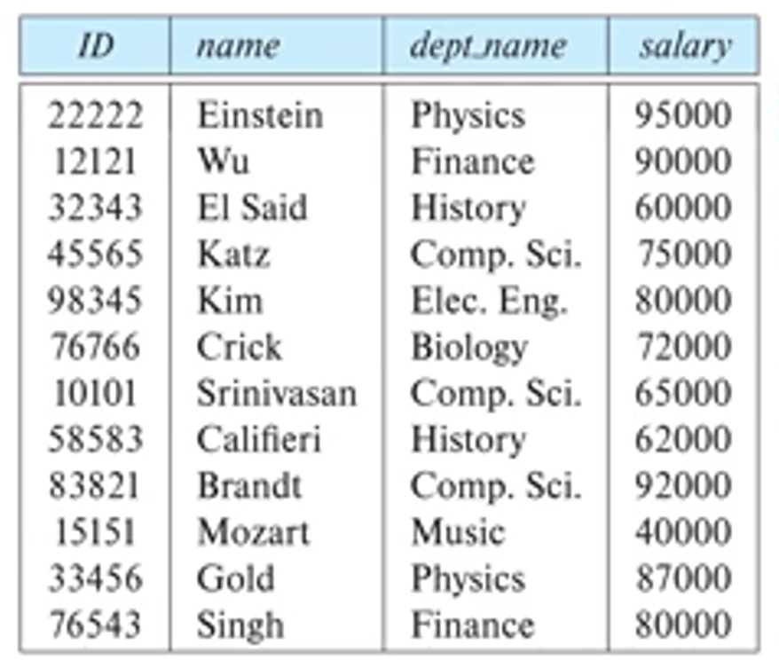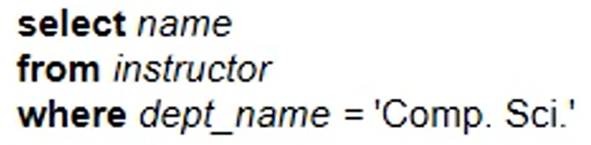 - "instructor" table에서 "name"을 찾는데 조건은 "dept_name = 'Comp.Sci.'"를 만족해야 한다.