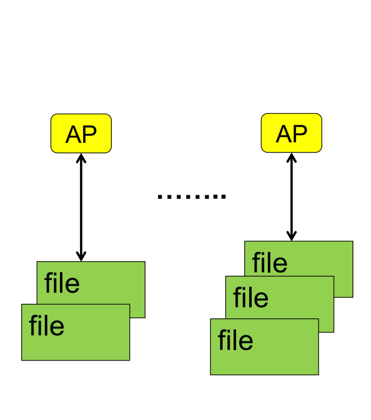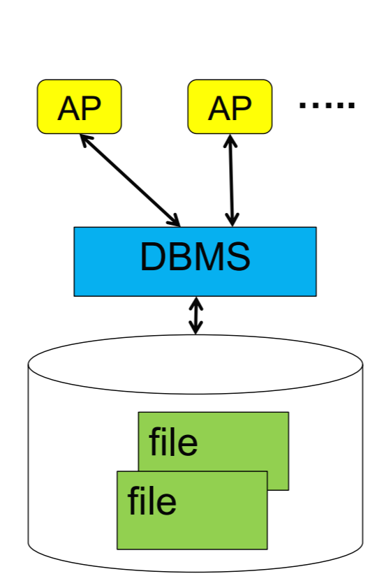 - application은 DBMS를 통해 통합 관리되는 데이터를 가져와서 응용의 로직만 수행하면 된다.