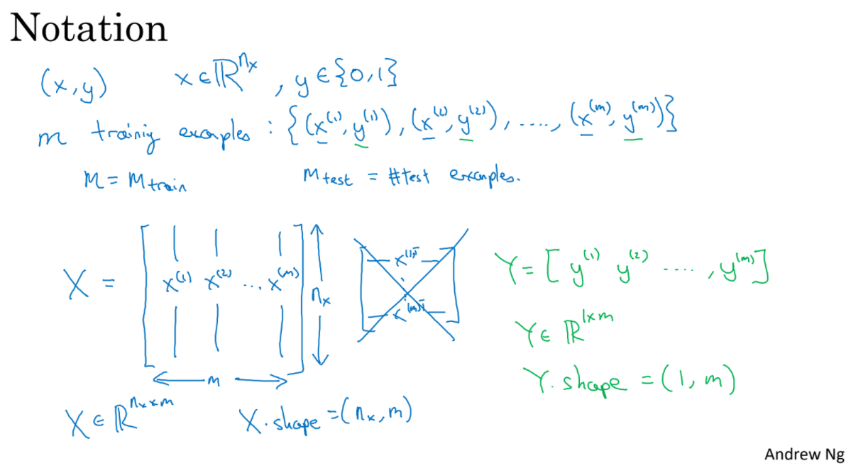 Y : y(i)들을 column으로 나열, m개의 columns로 구성