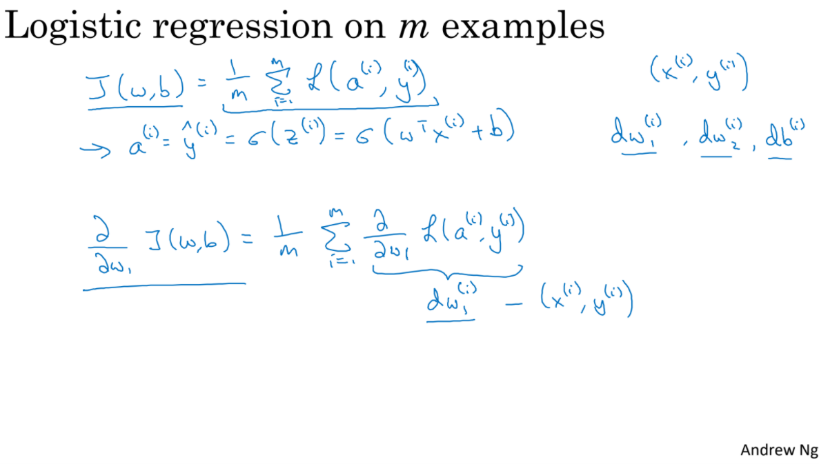m examples에서 gradient를 구하고 w와 b를 갱신하는 과정을 살펴본다.