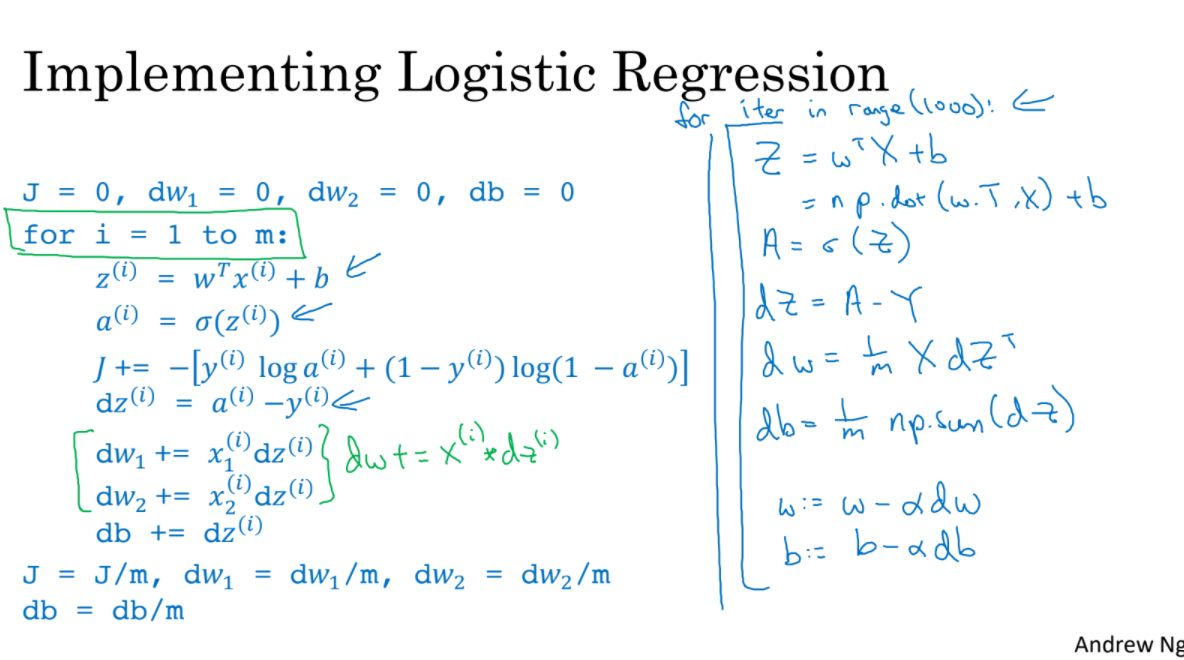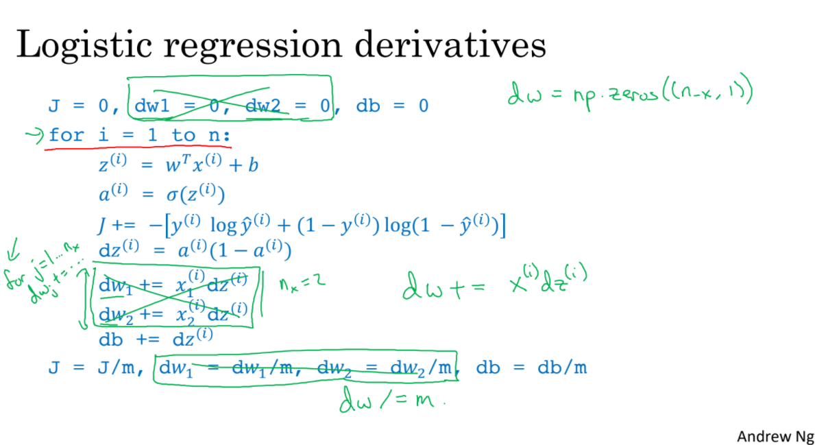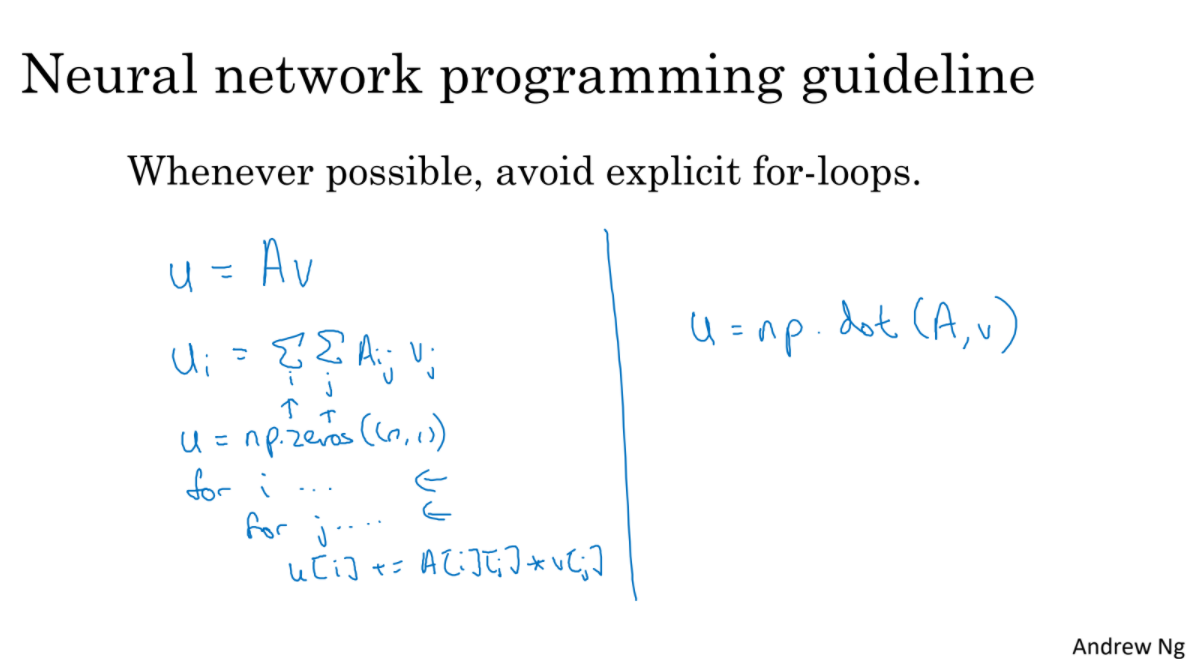 vectorization으로 for loop로 적은 코드를 더 효율적으로 만들 수 있다.