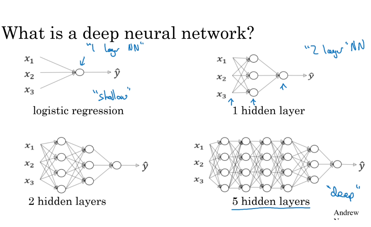 - 이제까지는 logistic regression, 1, 2 hidden layers만 살펴보았다. 이제부터는 더 deep한 hiden layers를 살펴보자