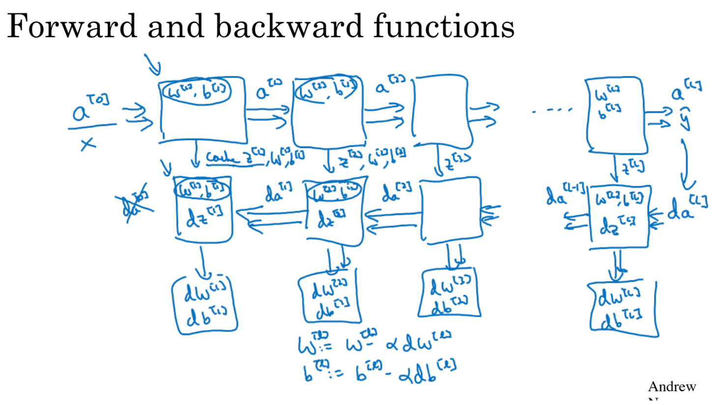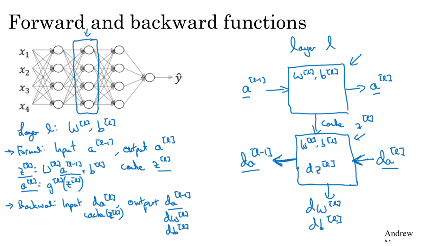 - 각 layer들의 계산 결과인 z, w, b를 cache에 저장해두면 나중에 backward propagation할때 유리하다.