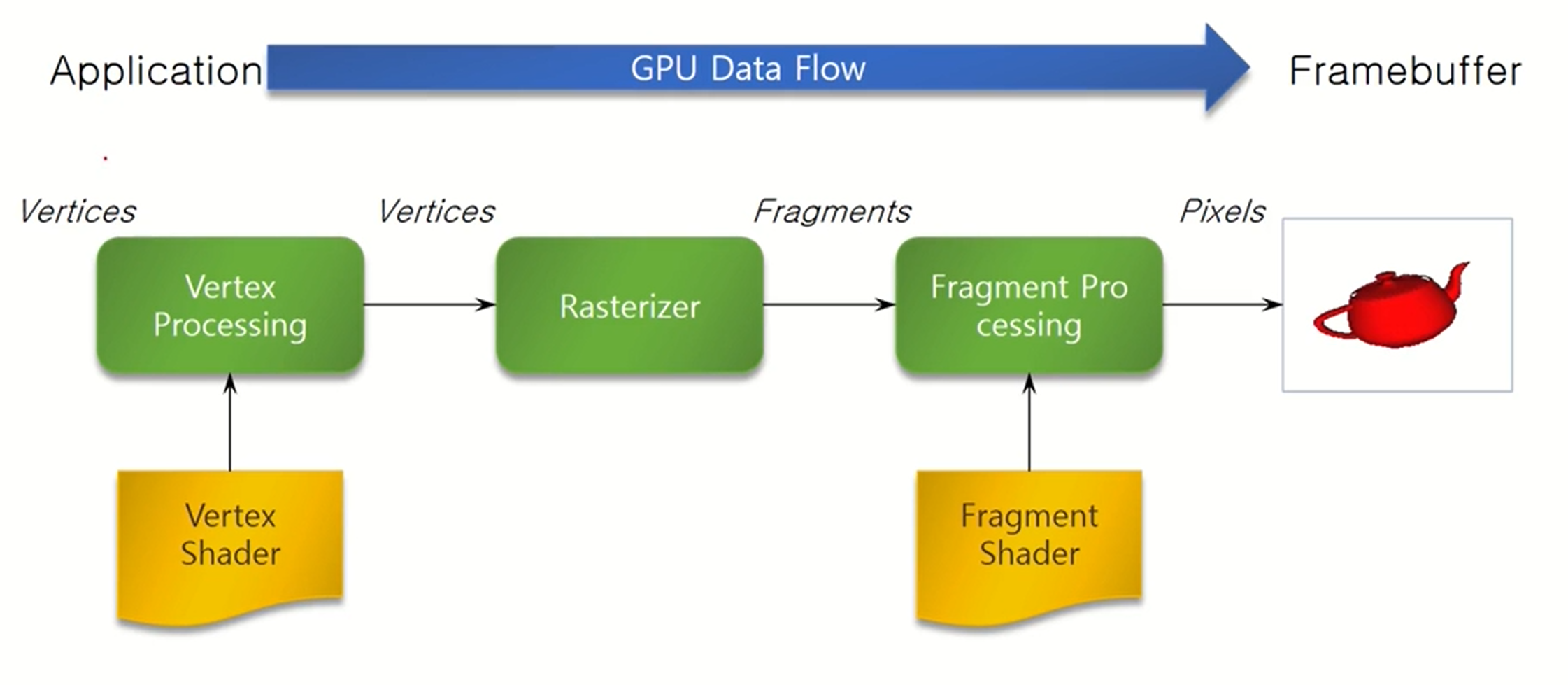 - pipeline을 거친 최종 결과는 framebuffer에 저장되어있다.