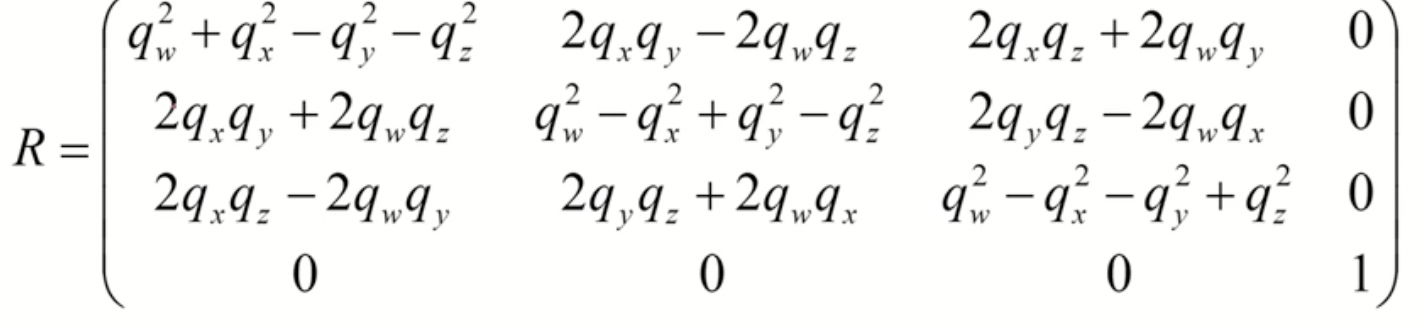 - 이를 rotation등의 여러 변환과 함께 곱으로 계산하기 편하도록 하고 싶다.