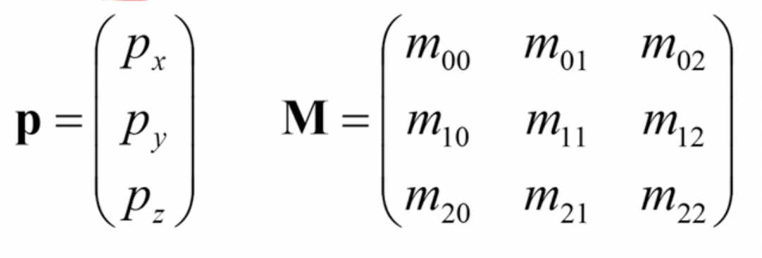 - vertex p에 m matrix를 곱해서 transformation을 구현한다.