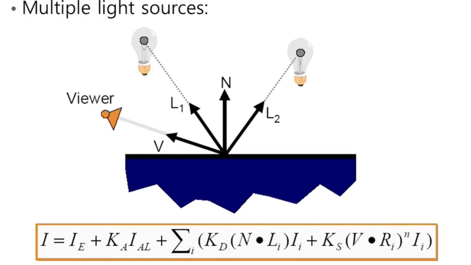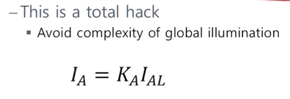 - 만약 광원이 여러개라면 emission과 ambient를 제외한 모든 I를 더해주면 된다.