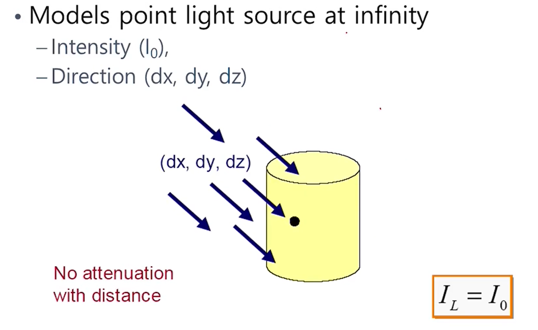 - 태양처럼 아주 먼 거리에 광원을 나타내는 모델