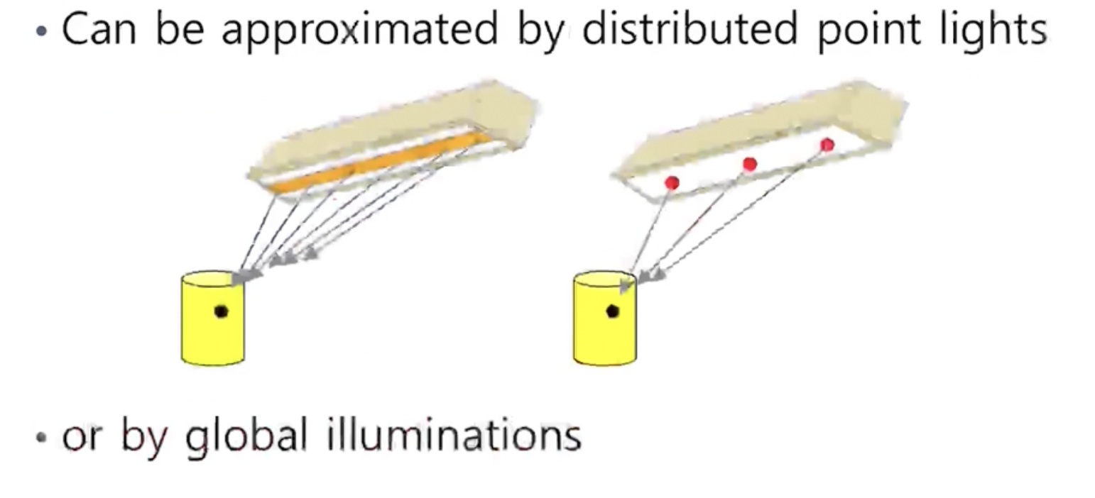 - 무수히 많은 Point light source가 있다고 생각할 수 있다.
