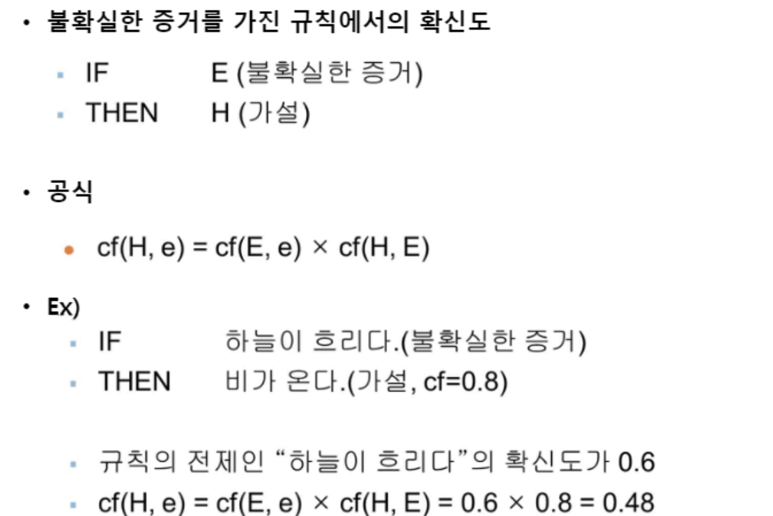 - 전문가 시스템에서 결론을 내릴때 확률을 함께 기입하는 것이다.