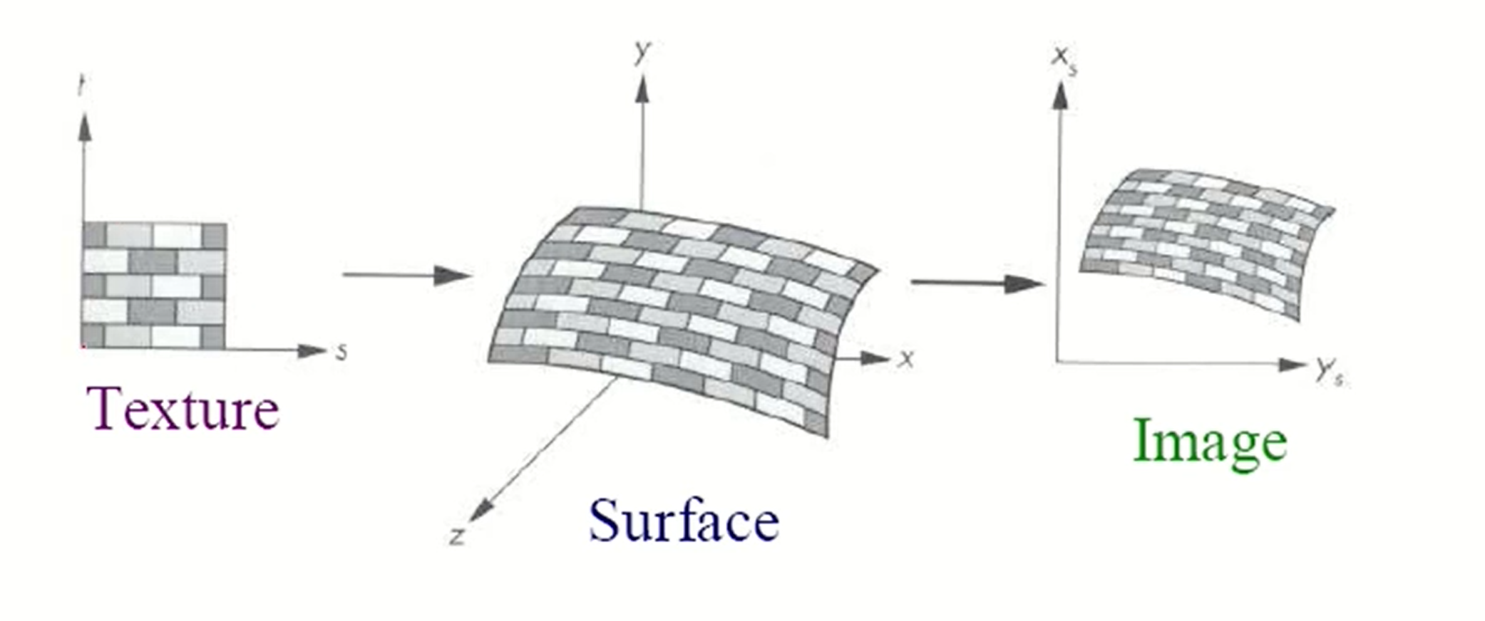 - 이렇게 픽셀마다 texture coordinate를 구하고나면 2차원의 texture image를 매핑하는 것이다.