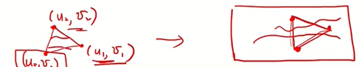 - 결국 3D trianglemesh에 2D texture를 매핑시켜야 한다는 것은 각각 하나의 triangle에 texture를 mapping시키는 것과 같다.
