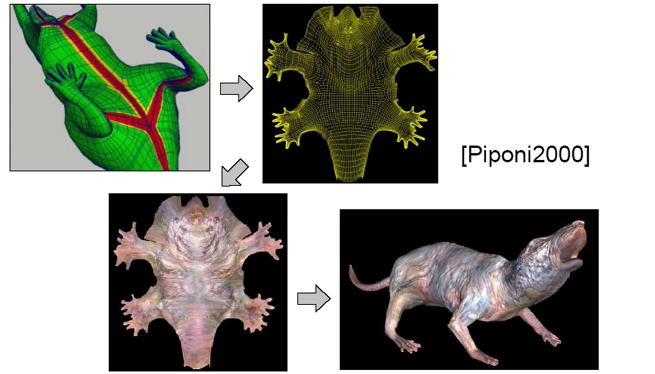 - 물체 표면을 여러 조각으로 나누어 unfold하고 하나의 surface에 이어 붙이는 것이다.