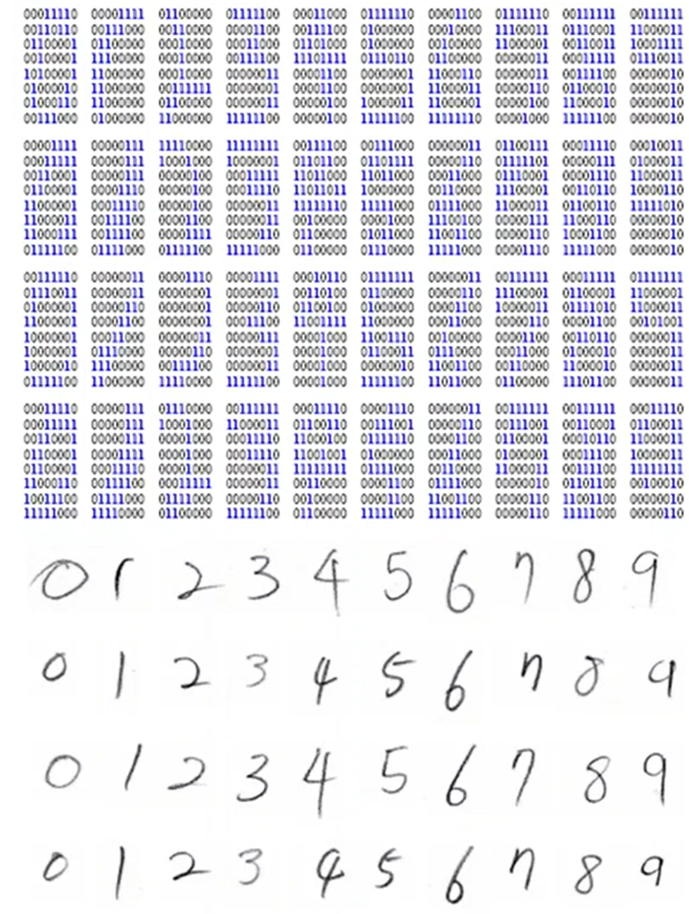 - 이미지를 세로로 반으로 잘랐을 때 좌우 1의 개수, 가로로 반으로 잘랐을 때 상하 1의 개수를 feature로 잡을 수도 있다. 이 방법으로 feature map에 특징에 따른 분별 결과를 표시해보면 6과 7은 분별력을 갖는 것 같으나 2, 8, 10등은 뭉개져서 사실상 분별력이 없다고 볼 수 있다.