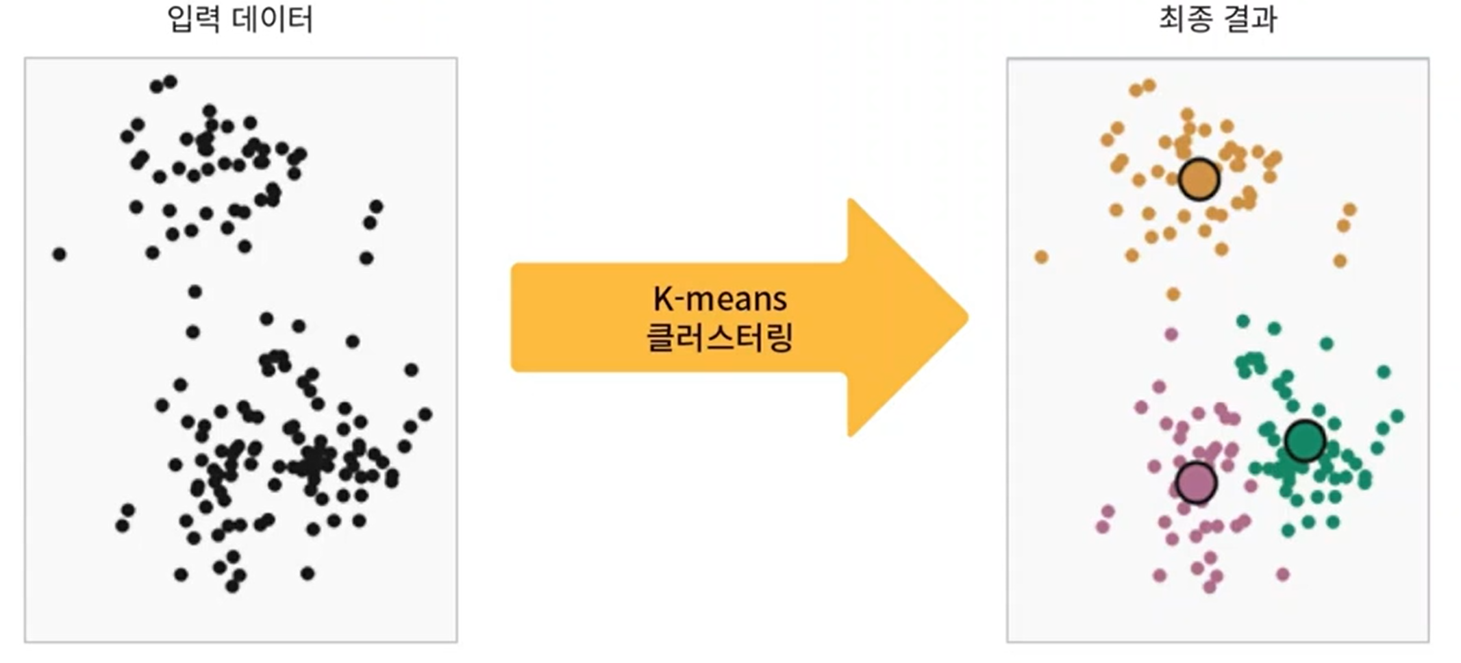 - 데이터를 주었을 때 어느 지점을 중심으로 군집들을 찾는 clustering의 예시이다.
