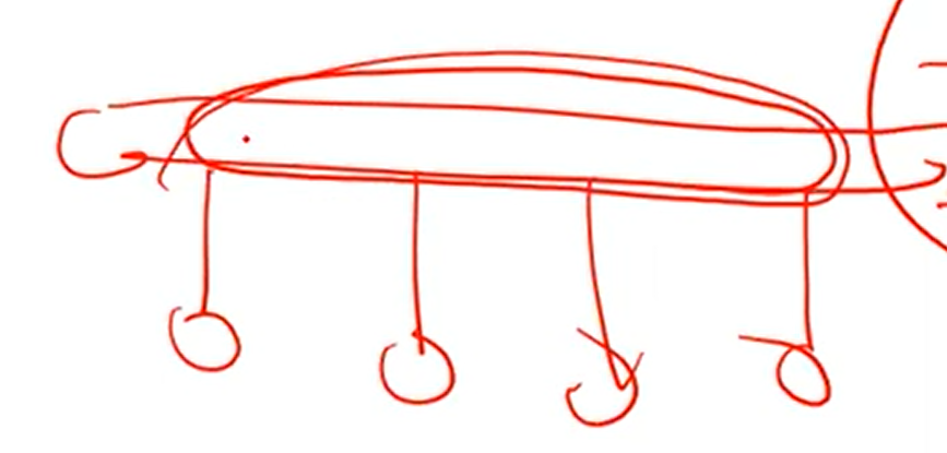 - 여러 노드가 하나의 bus를 공유하는 상황이고 저 공유하는 링크를 버스라고 한다. 이 모양을 버스 토폴로지 라고 한다.