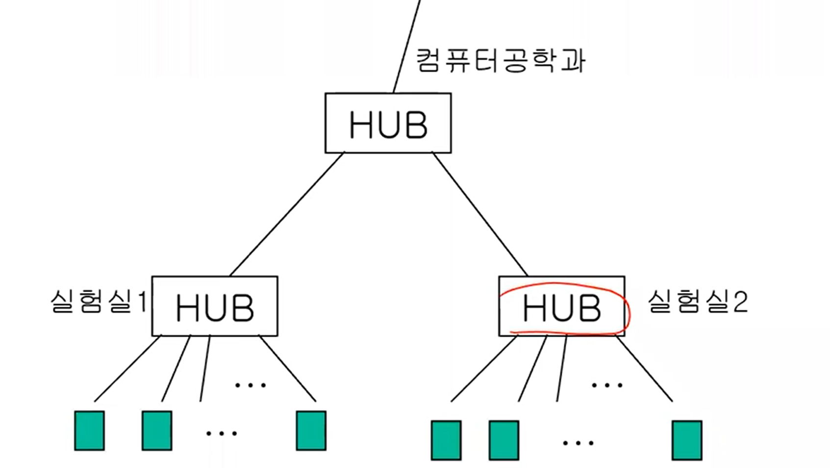 - 집에서 사용하는 공유기는 일종의 hub이다. 기존의 bus가 들어간게 아니라 훨씬 지능형인 switch가 들어있다.