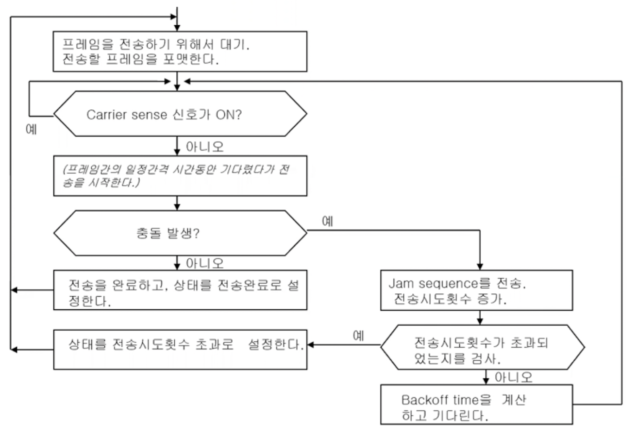 - 이더넷의 프레임 전송 과정을 흐름도로 살펴보자.