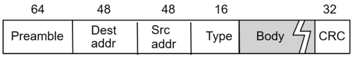 - Dest addr, Src addr : 이전에 배웠던 HDLC는 기본적으로 점대점 연결위에 전달되는 프레임이기 때문에 출발,목적지 주소가 필요가 없었다. 하지만 이더넷에서는 버스를 타고 어디서 왔고 어디로 가는지 주소가 필요하다.