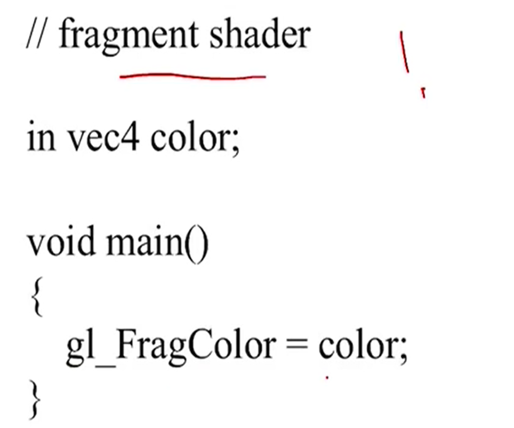 - 즉 이렇게 vertex의 값들을 interpolation해서 각 픽셀들의 값들을 정하고나면 fragment shader에게 input으로 넘겨준다.