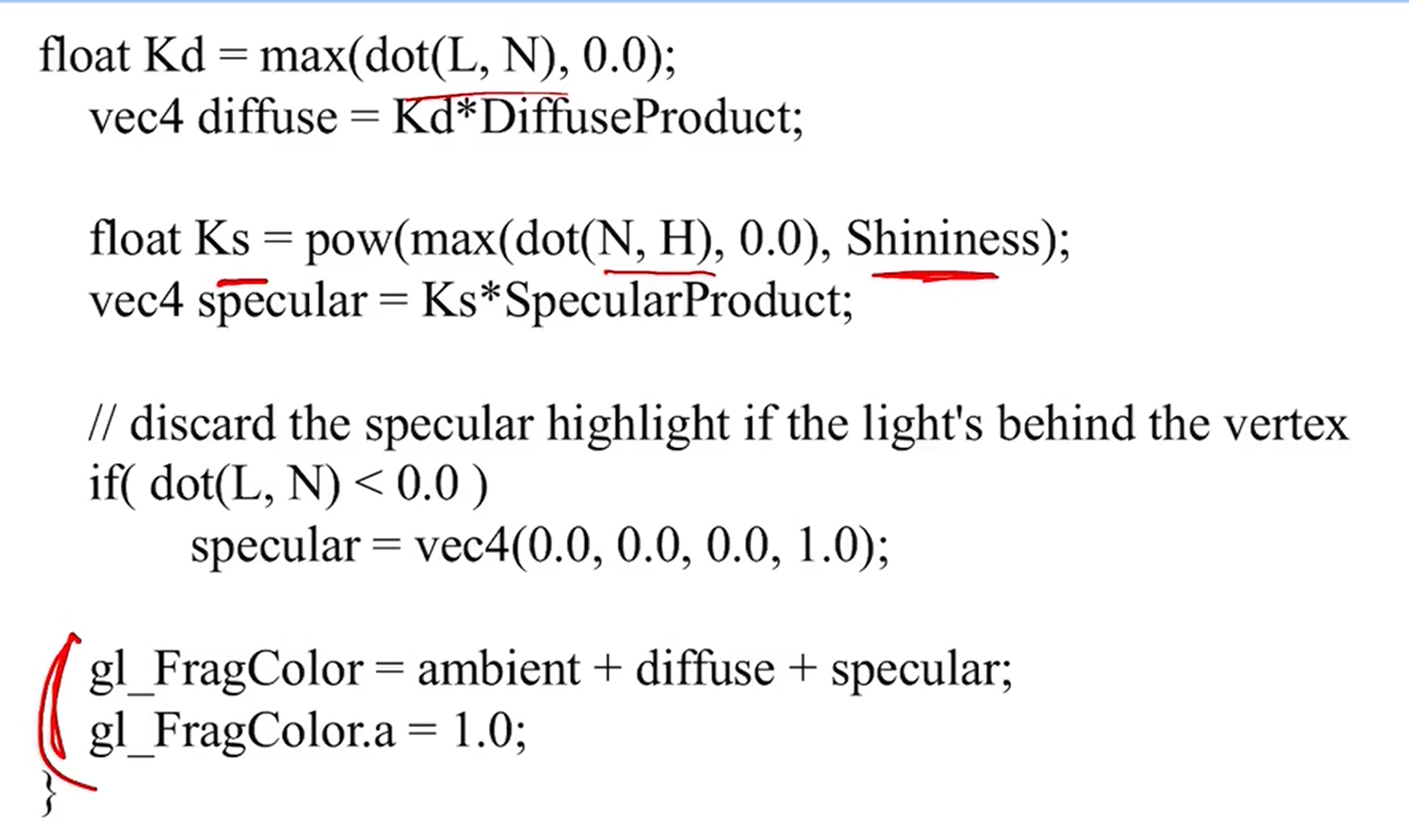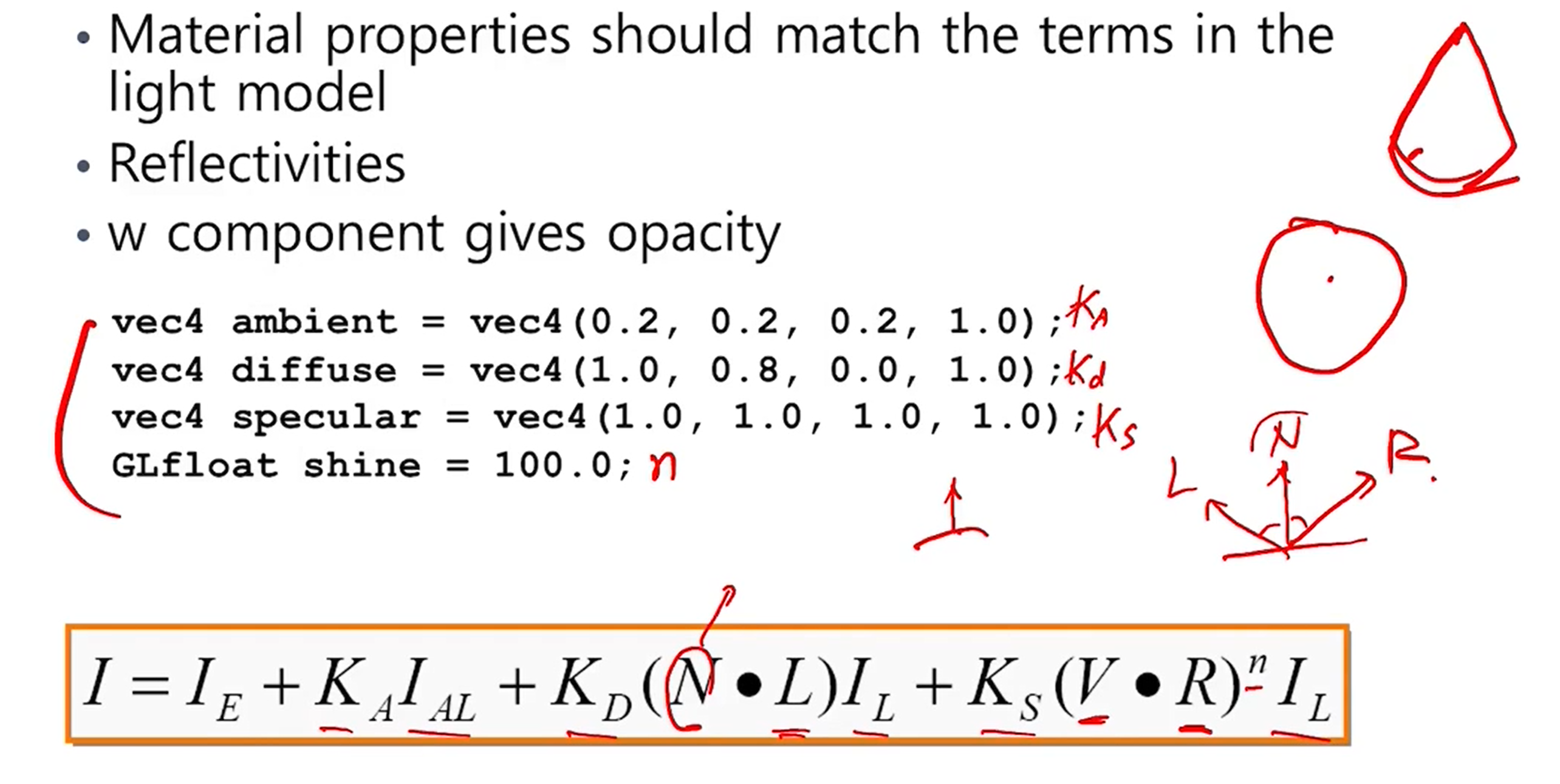 - material property를 정의하는 것은 다음과 같다. Ka, Kd, Ks, n
