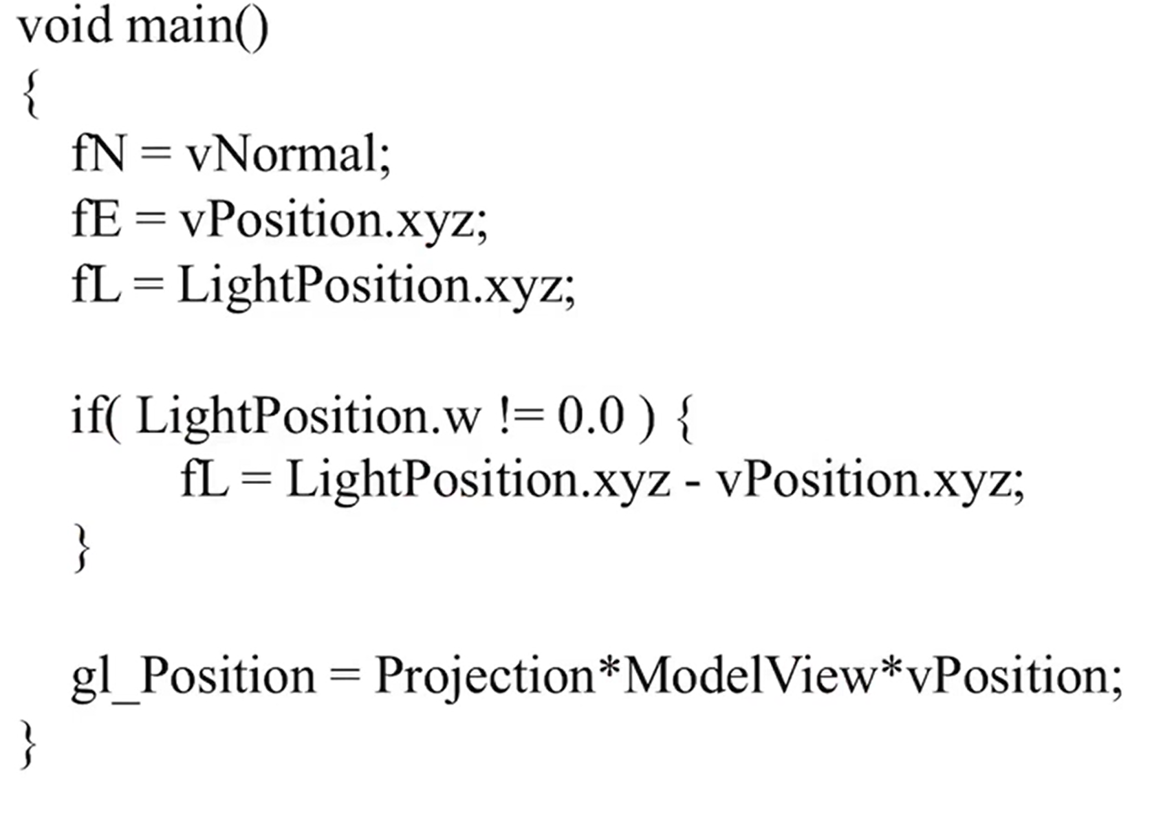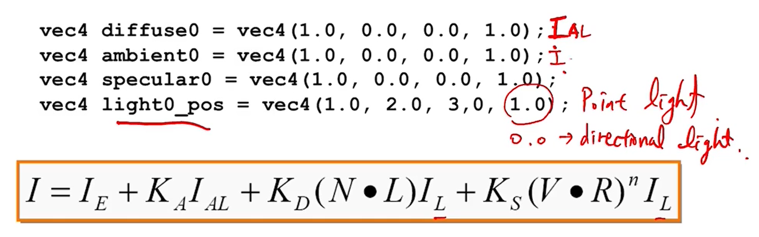 - 참고로 마지막 자리가 1.0이면 point light이고 0.0이면 directional light이다.