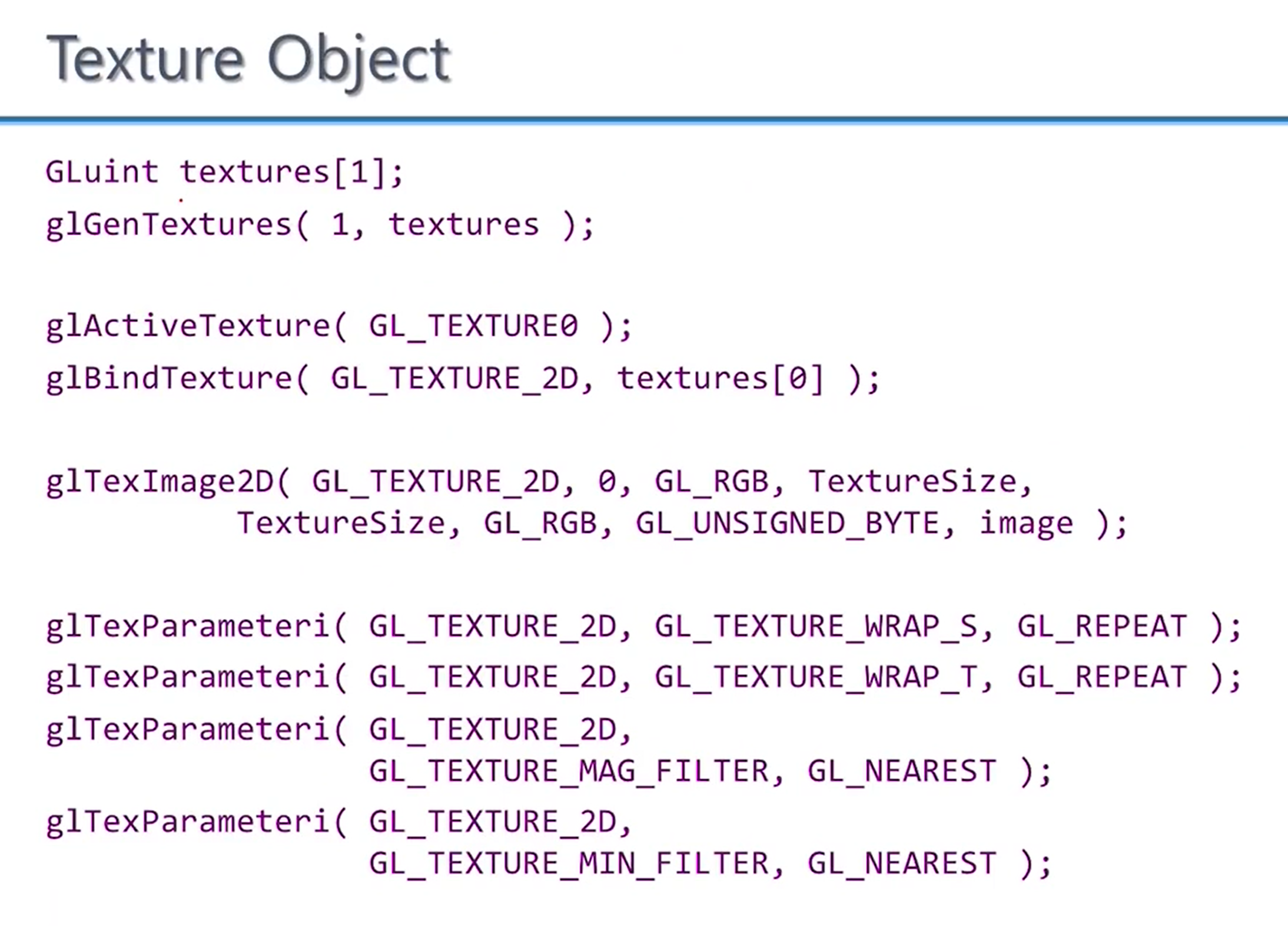 - texture object를 만드는 과정을 다시 정리해보자.