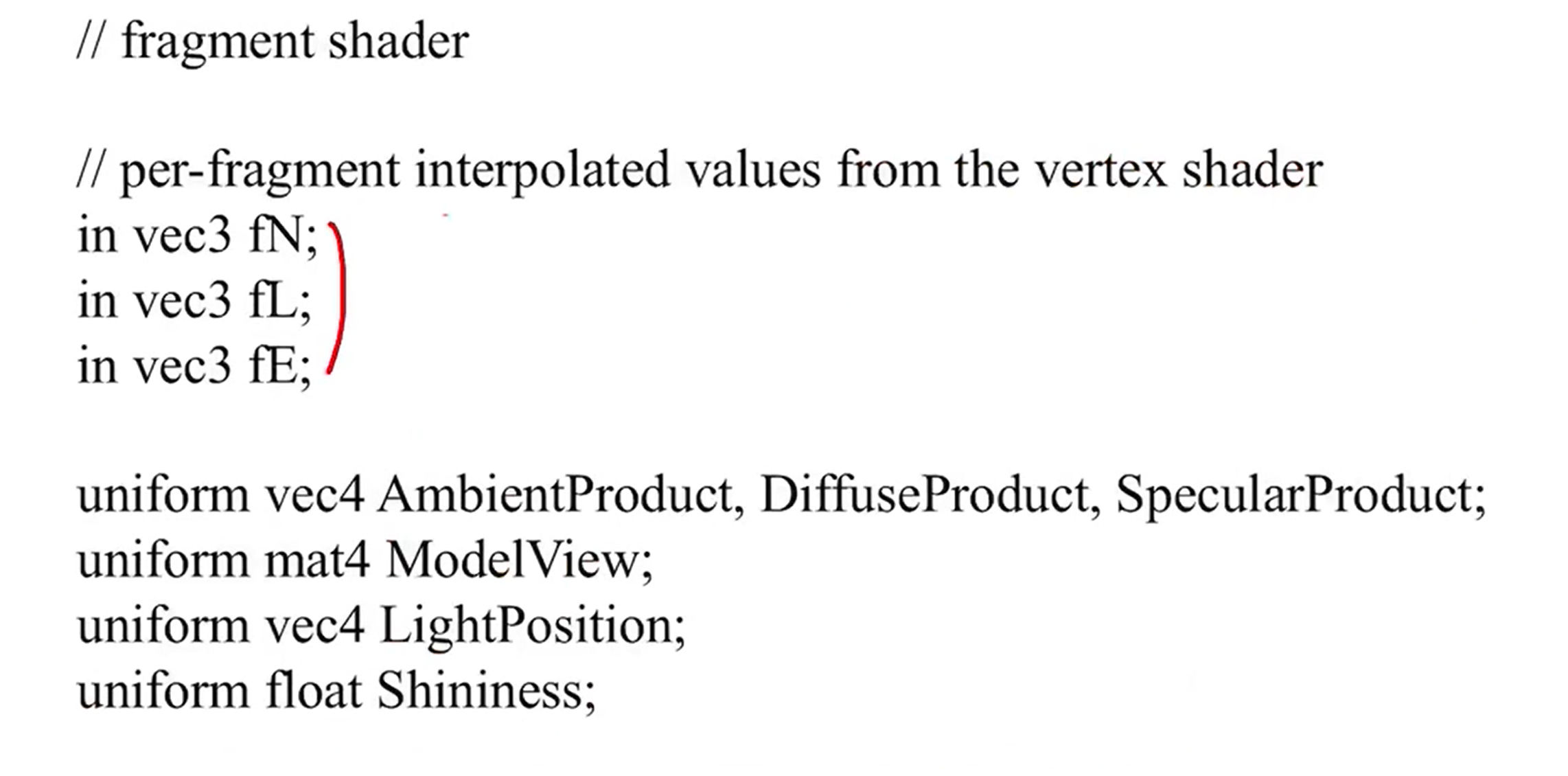 - 모든 fragment들이 고유하는 정보들을 uniform으로 공유하게 된다.