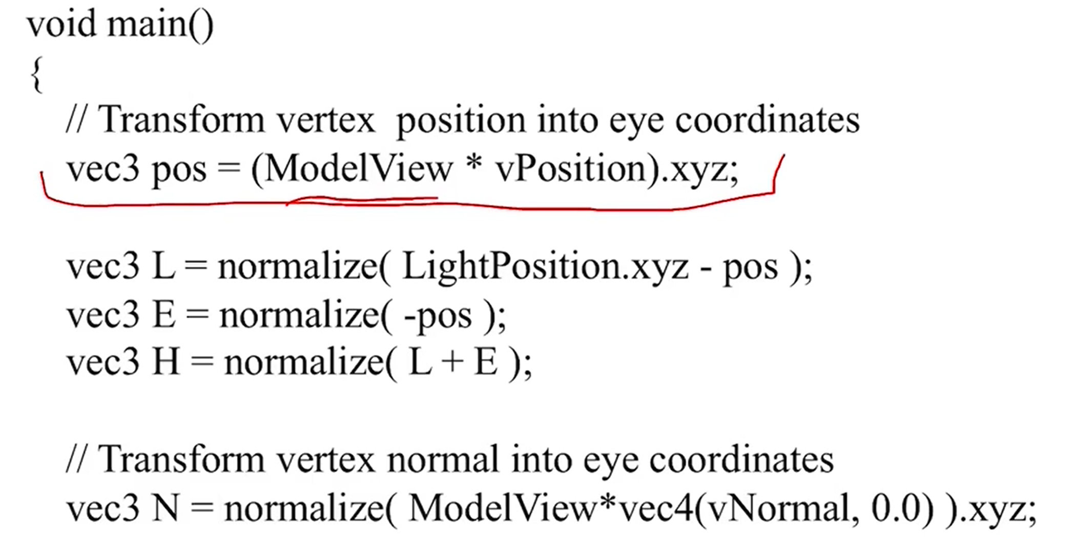 - 옛날에는 fixed pipeline에서 계산을 다 해주었지만 지금은 shader program을 만들어서 구현해야 한다.