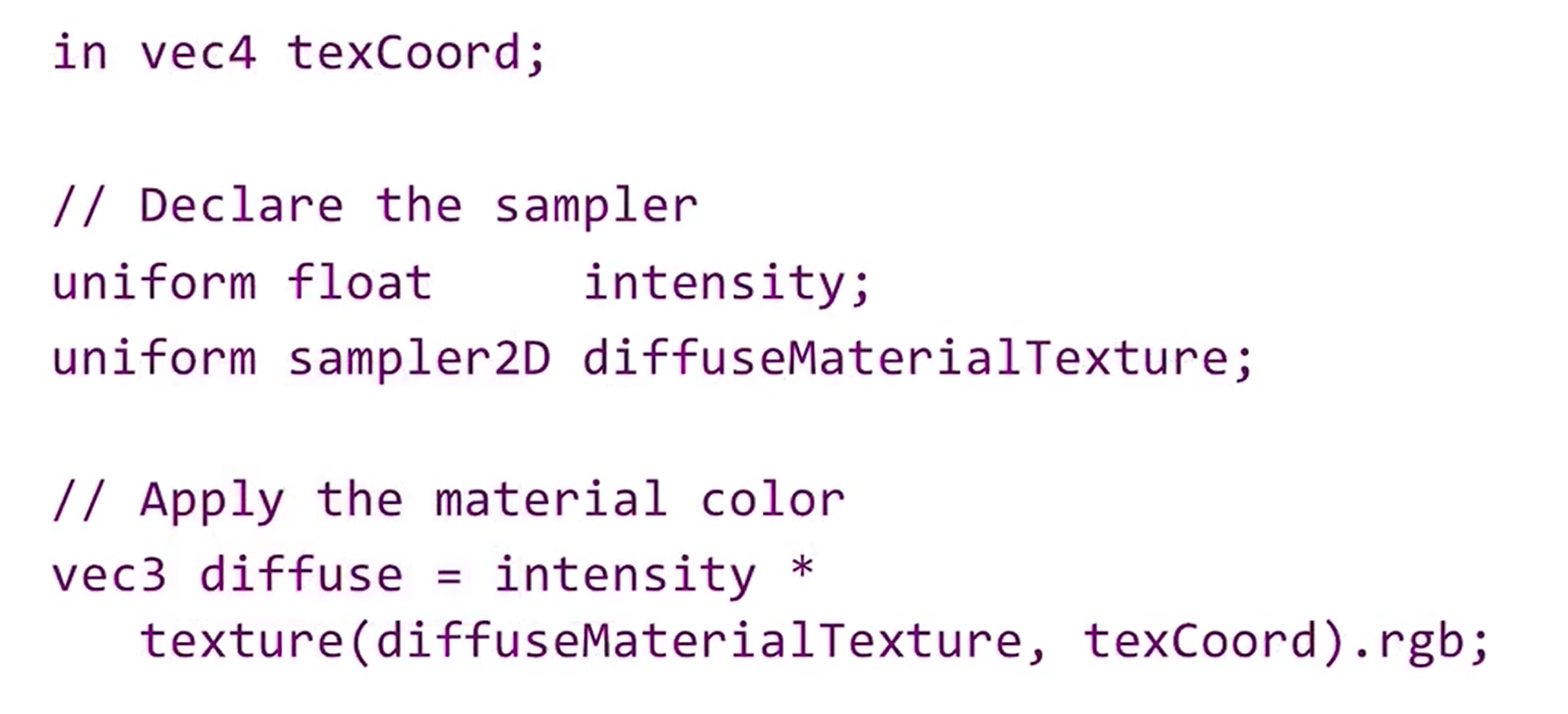 - texture color는 rgba인데 texCoord를 가지고 여기서 rgb만 꺼내온다. (.rgb처럼 세개만 가져와서 벡터를 만드는것을 swizzle이라고 한다)