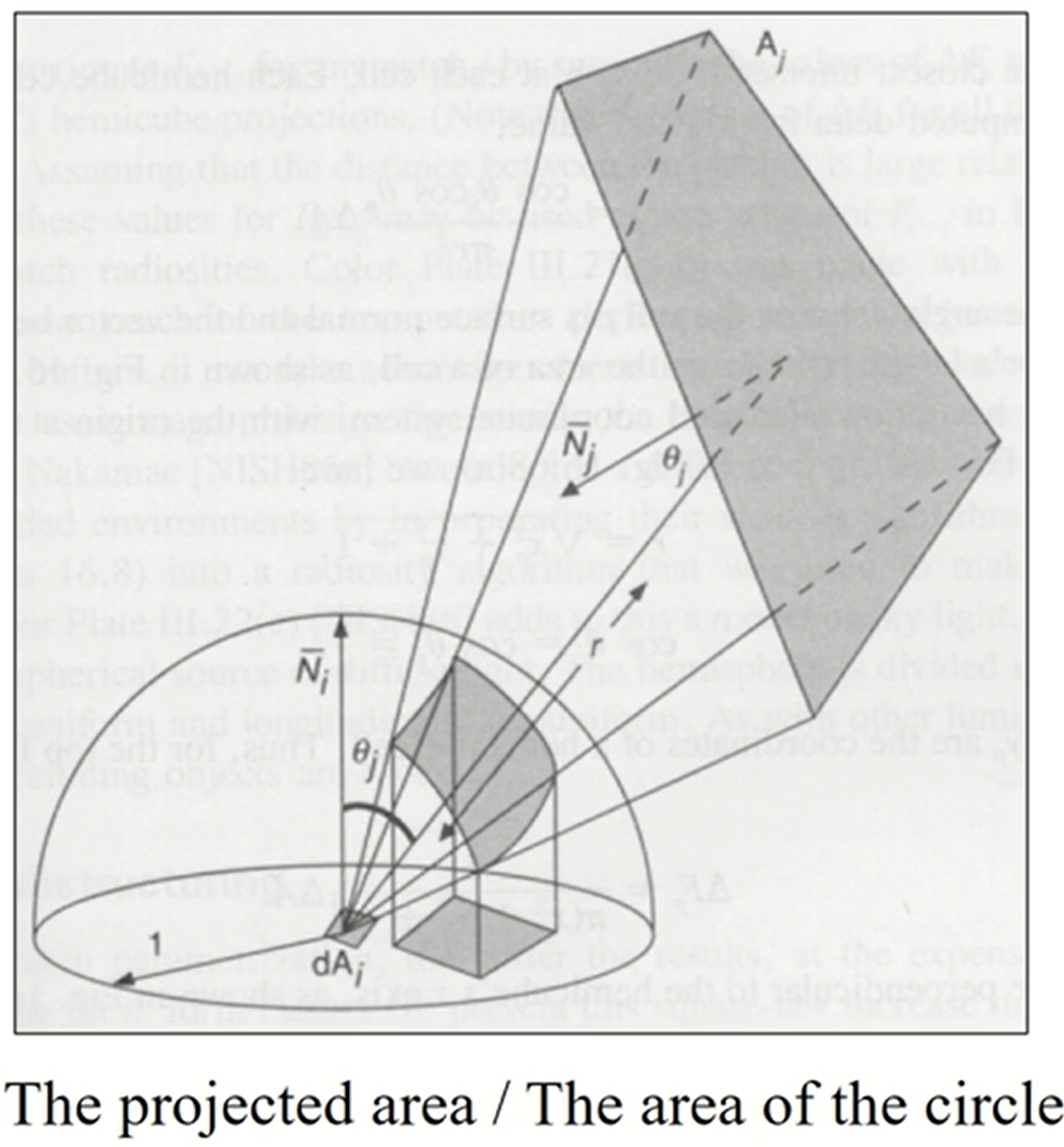 - 원의 면적분의 수직으로 내려온 면적이 Form factor, Fij 가 된다.
