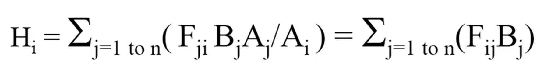 - 위 식은 Fji들을 모두 더해서 i로 들어오는 빛들, Hi를 계산하는 식이다.