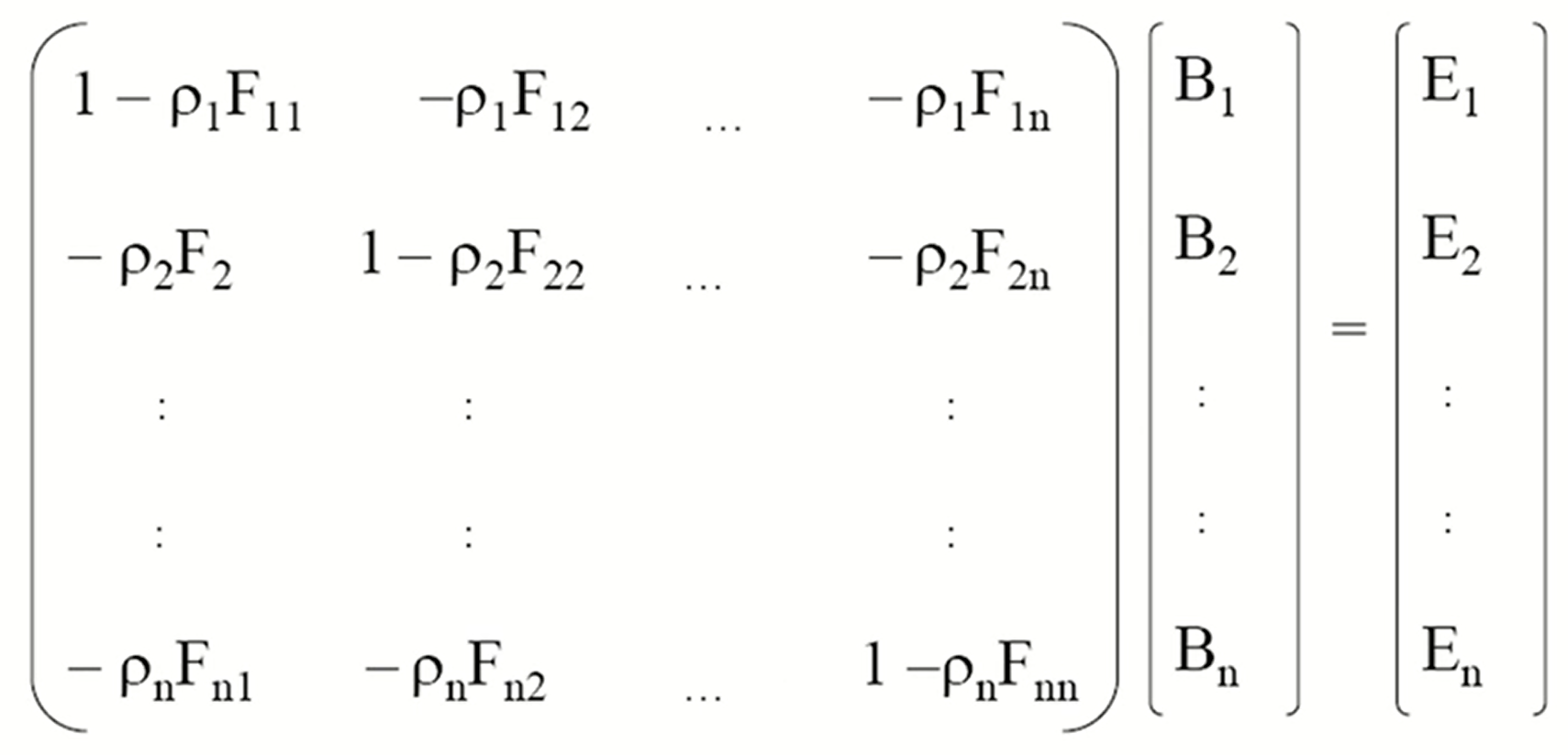 - 따라서 radiosity equation은 위처럼 정리된다.