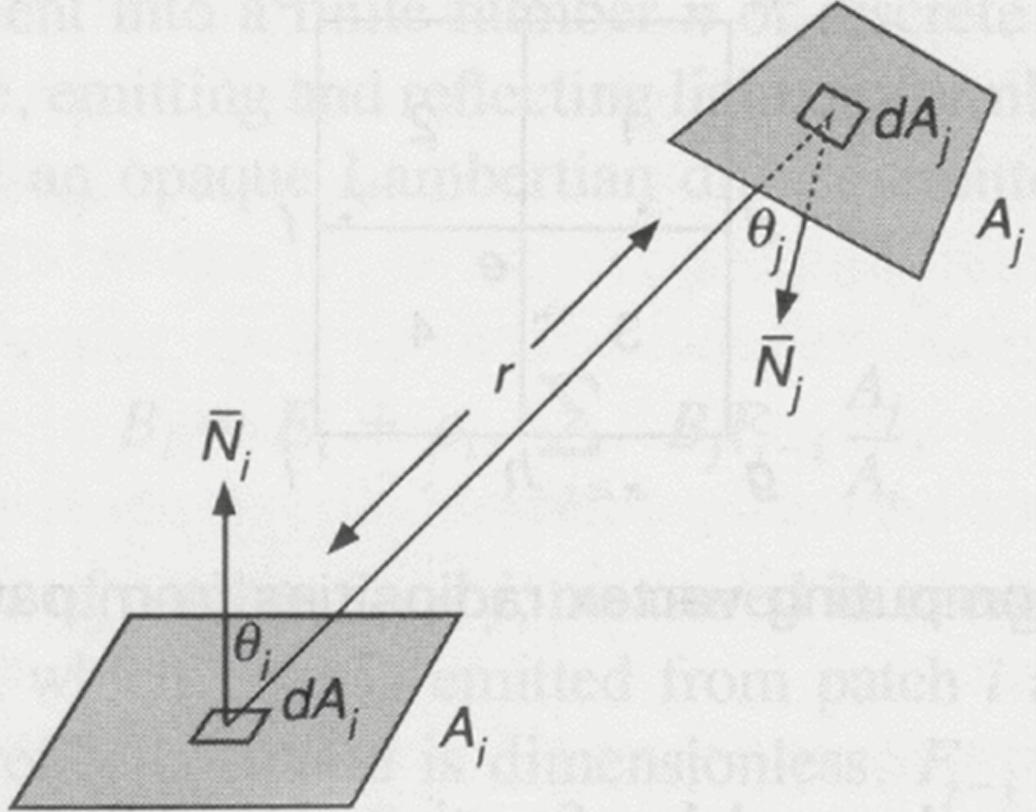 - form factor : patch A에서 patch B로 얼마만큼의 enery가 이동했는가를 말한다.