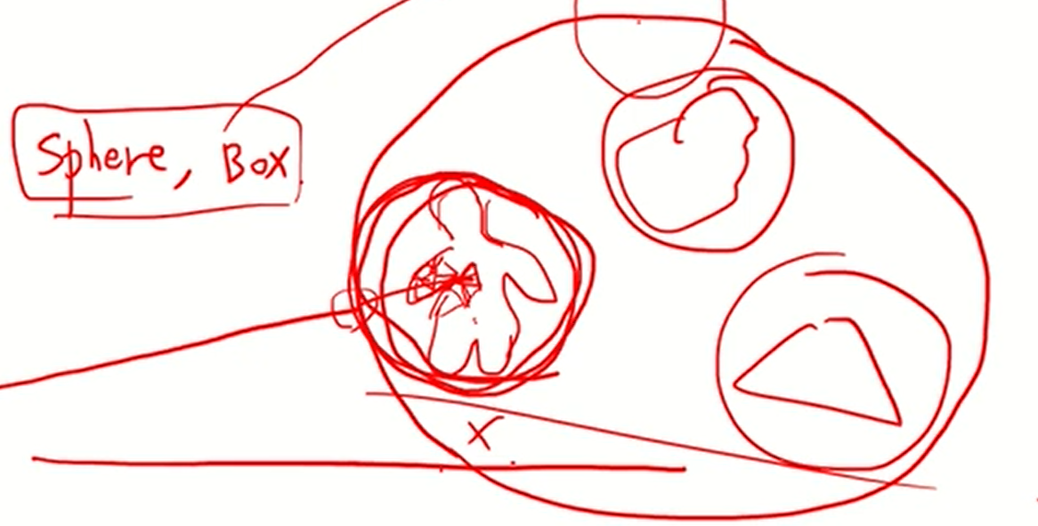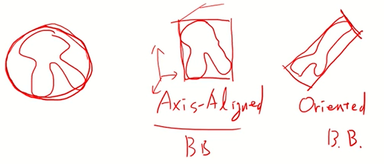 - 물체를 완전히 감싸는 가장 작은 단순한 bounding volumn을 만든다. ex) sphere, box