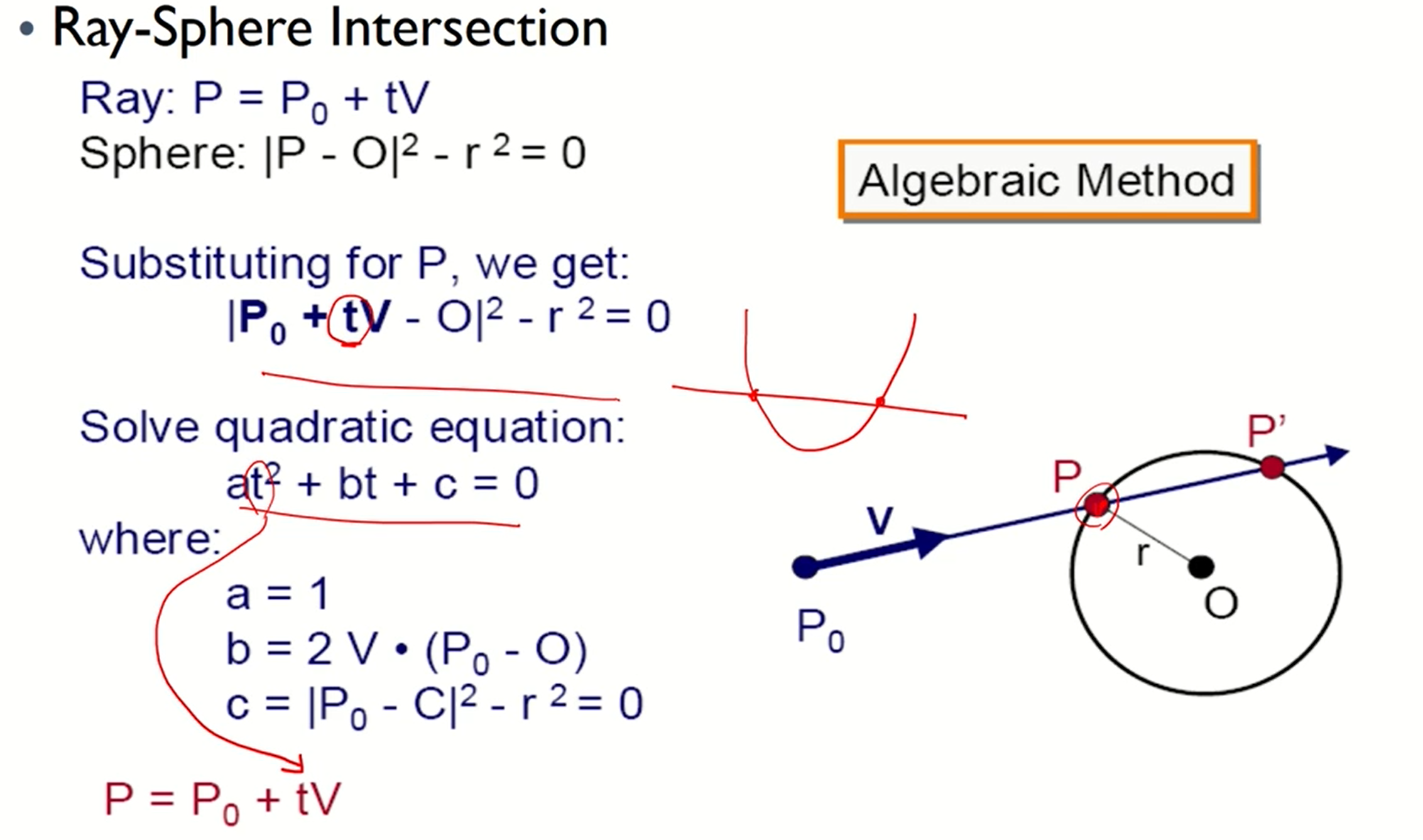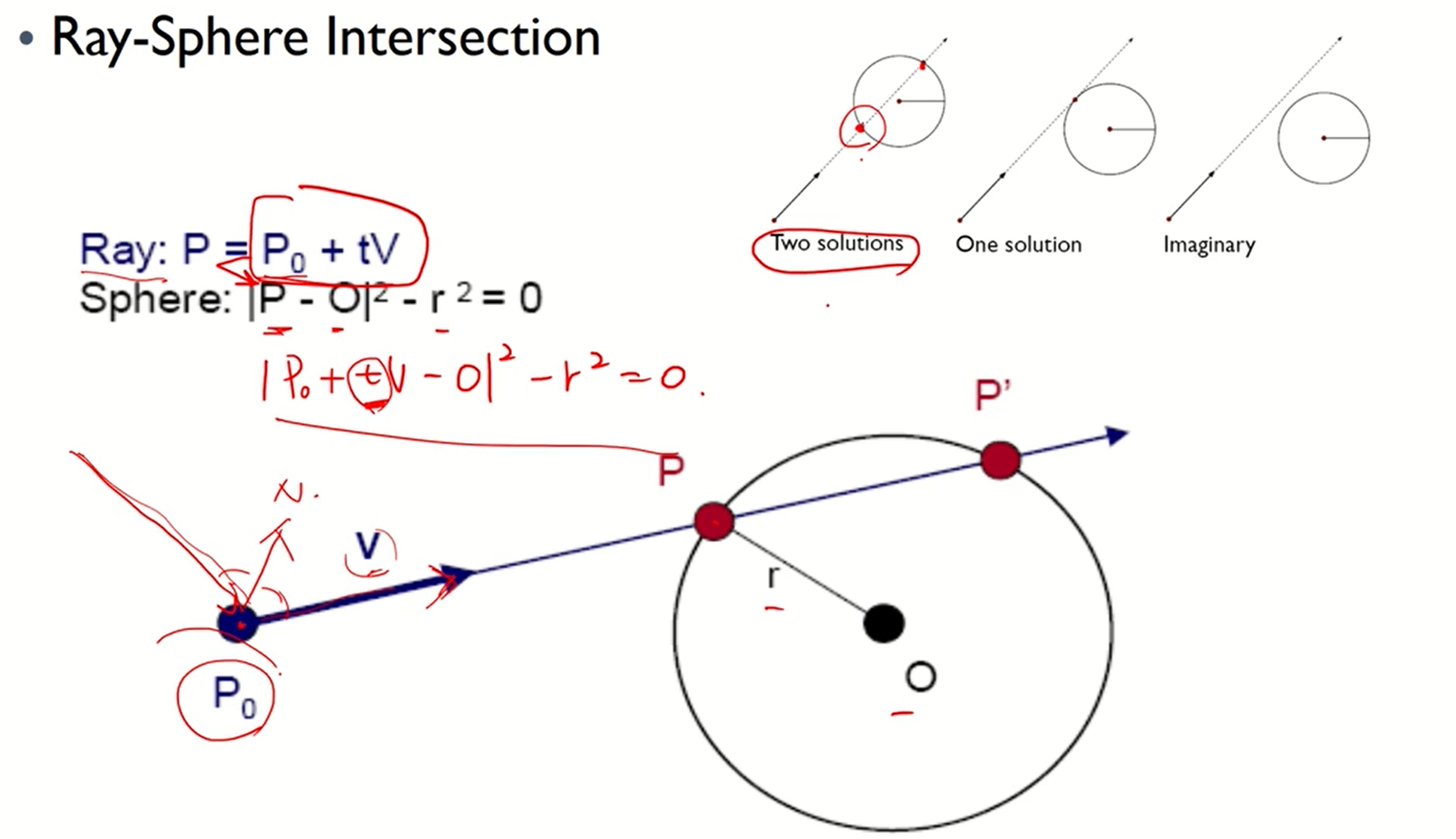 - ray와 sphere의 intersection을 구하는 건 어렵지 않다.
