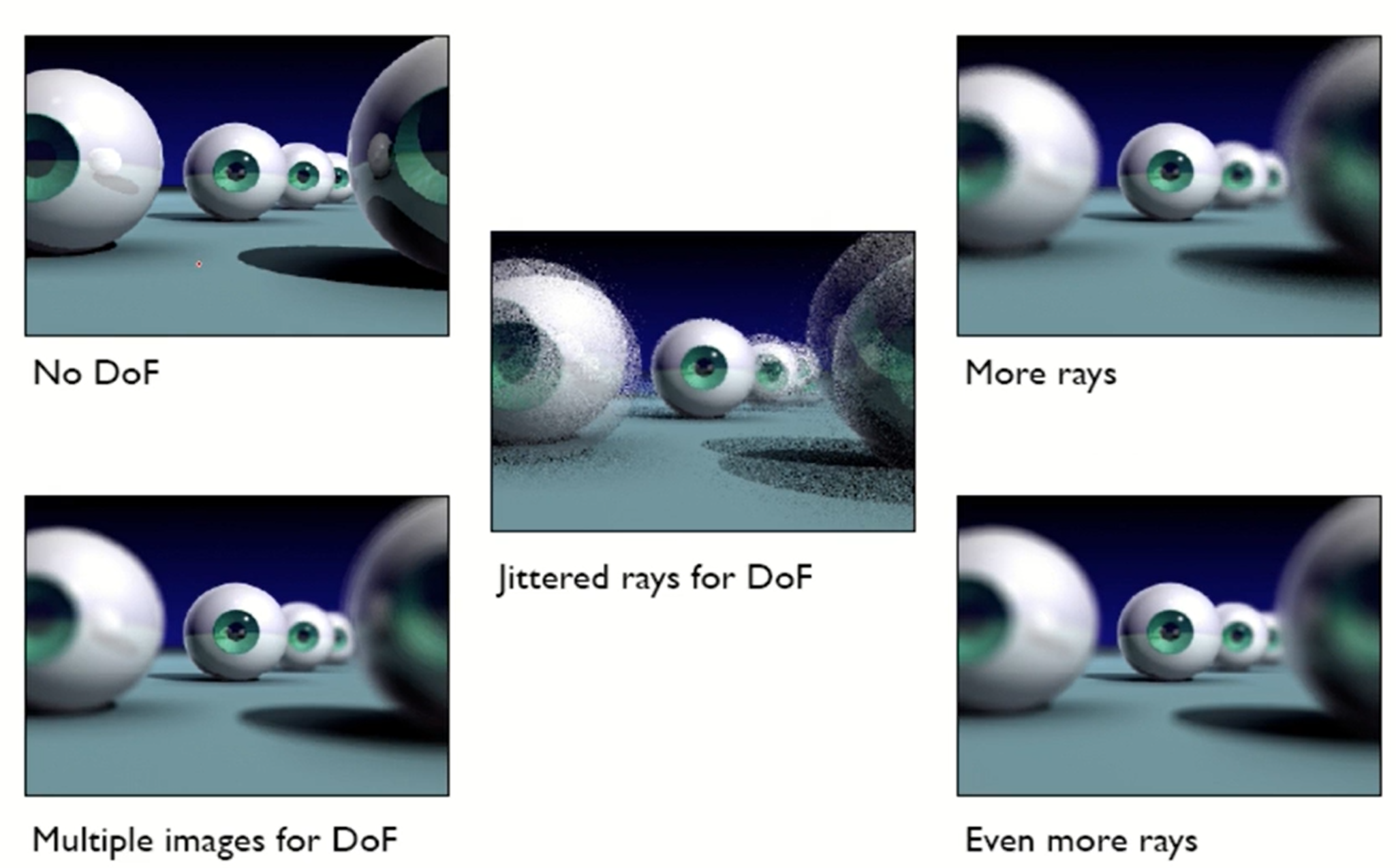 - 또 구현 가능한 한가지는 distribute ray를 시간차를 두고 쏘아서 Motion blur를 만들 수 있다.