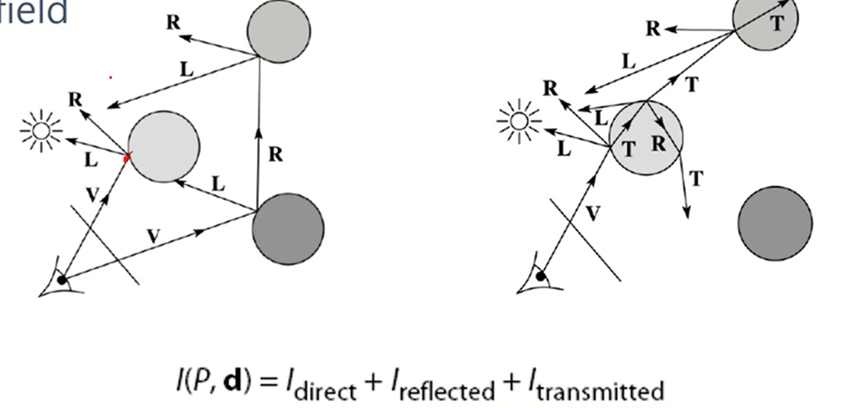- 반사되어 a에서 b로 가는 빛도 있겠지만 투명한 물체라서 통과하여 새로운 점c로 닿을 수도 있다. 이를 모두 더하게 된다.