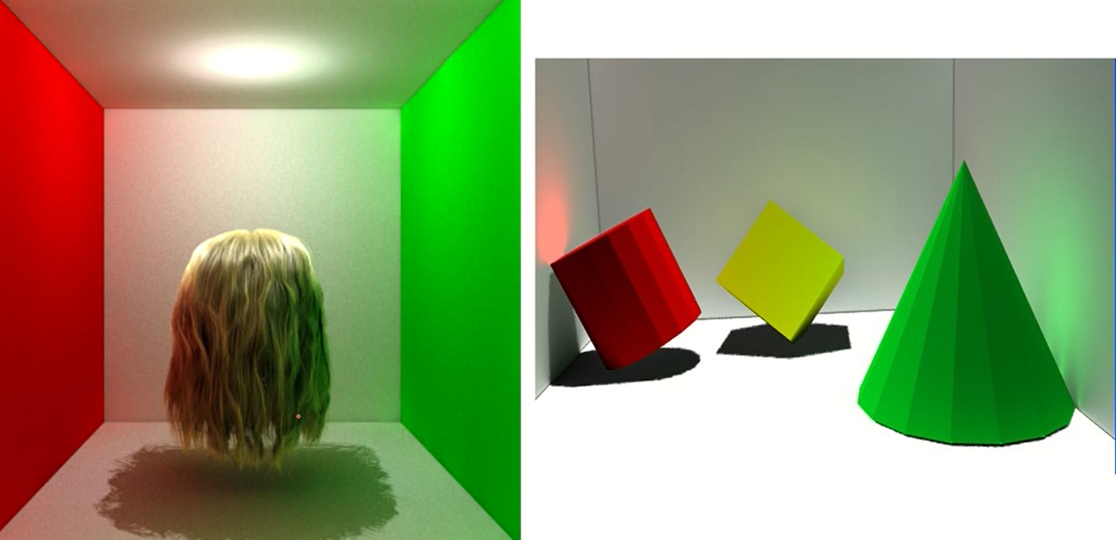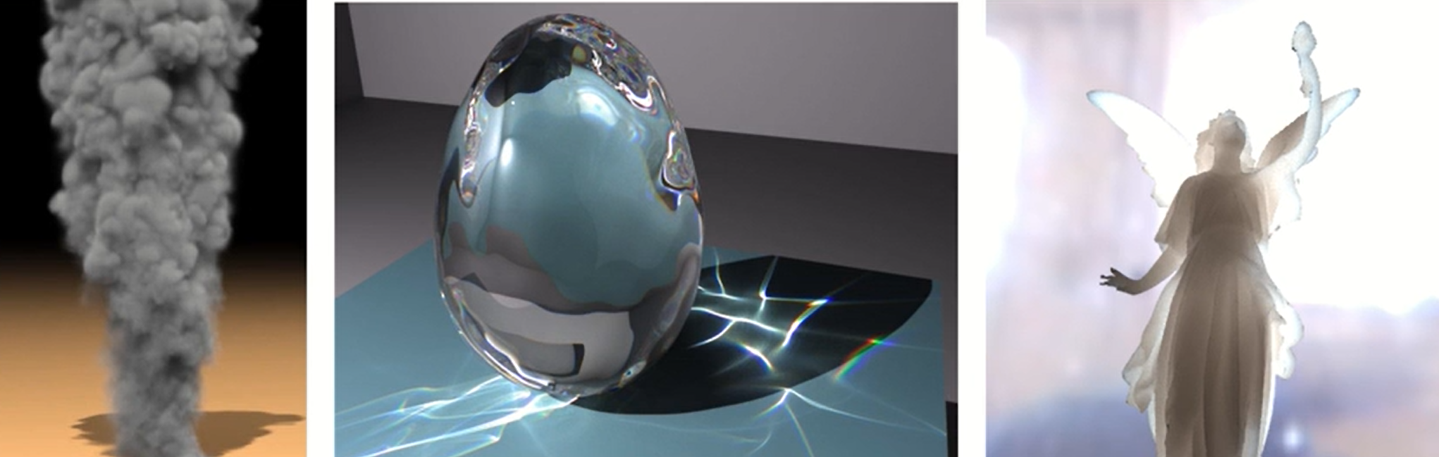 - relection(반사), refraction (투명한 물체를 통과하면서 보이는 효과), 그림자, scattring(산란) 등 다양한 optical effect를 구현할 수 있다.