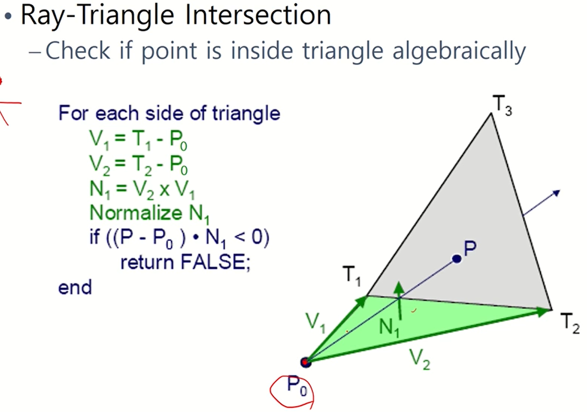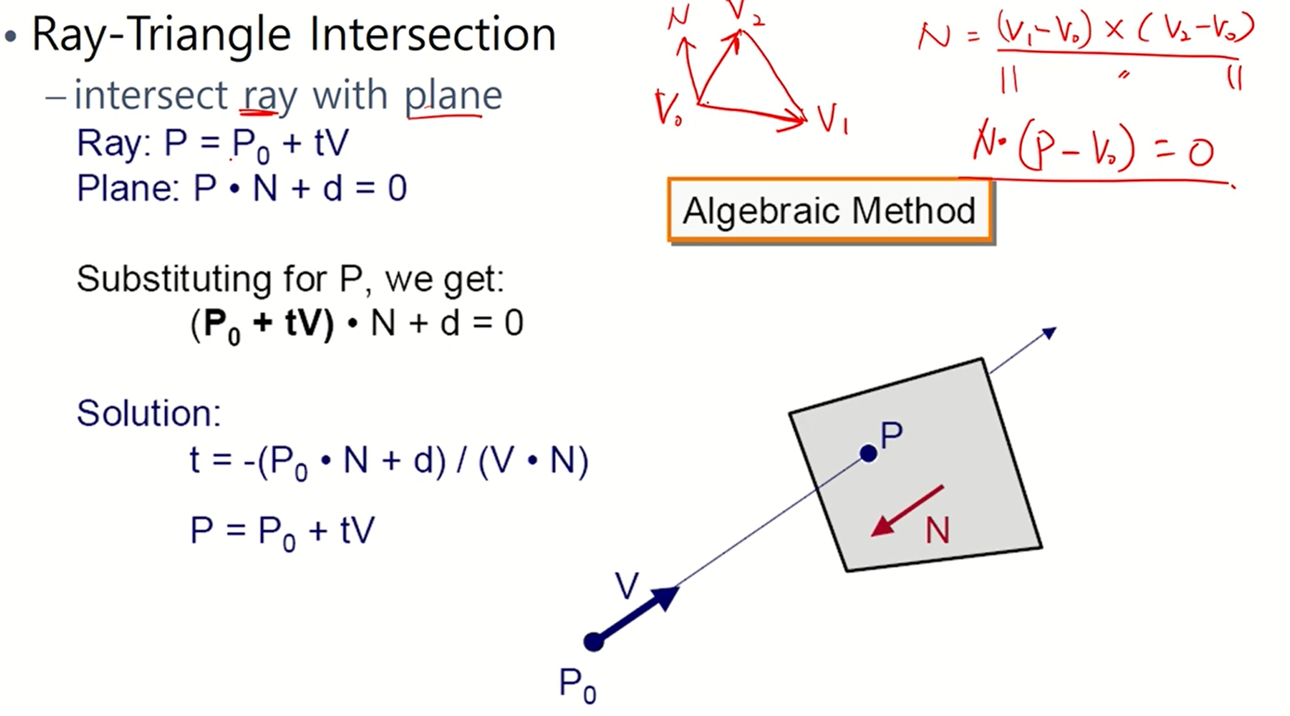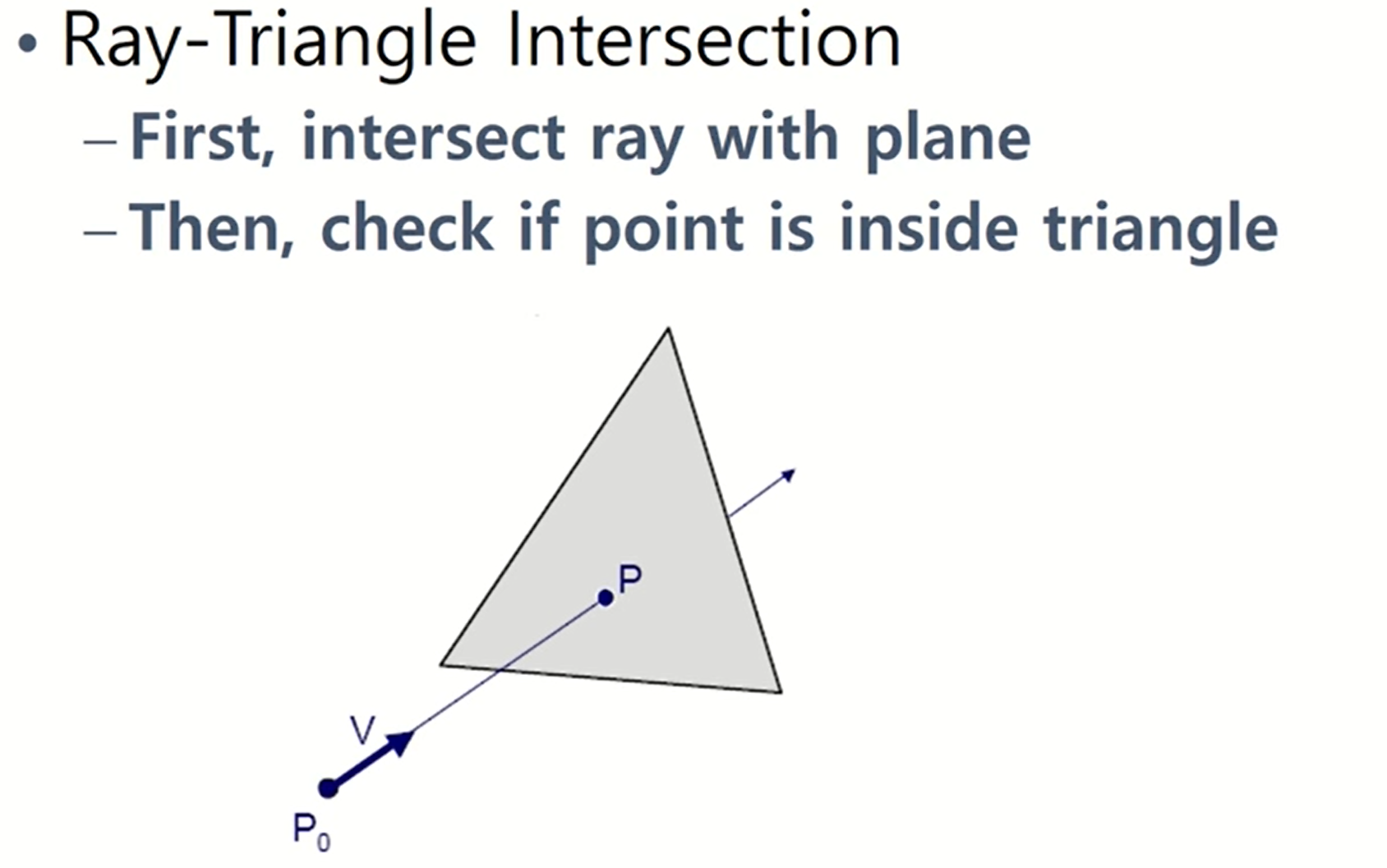 - 삼각형과 ray의 교점을 구하는 다른 방법도 알아보자.