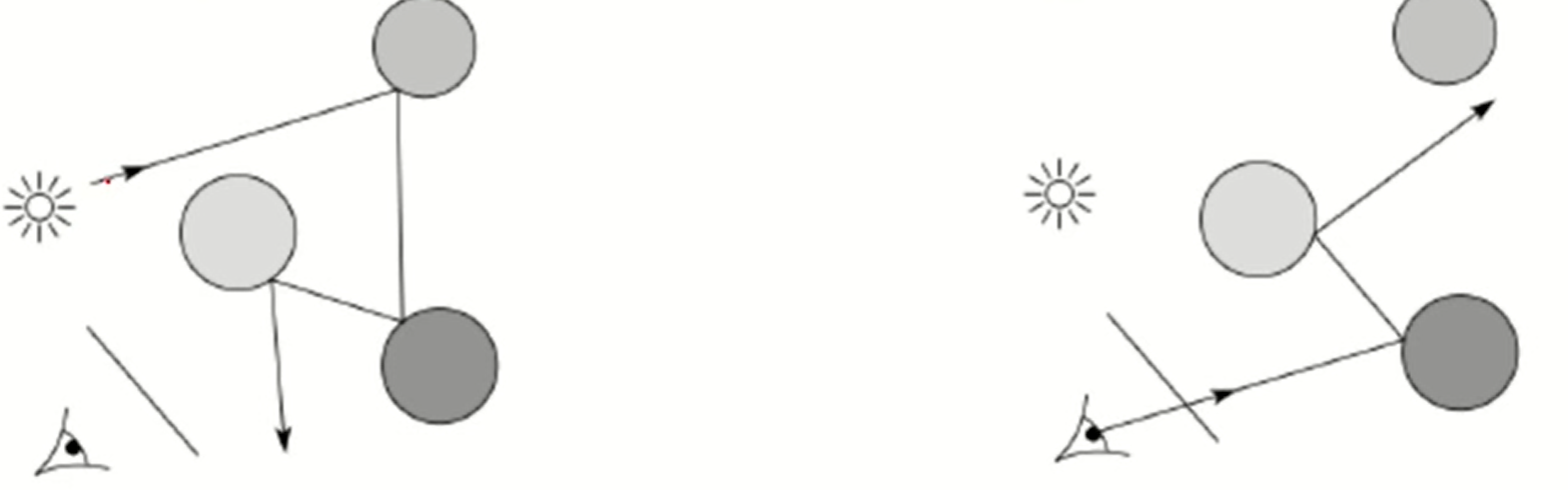 - 이는 실제로 구현하기 매우 어렵다. 무한한 ray중 어떤게 눈에 들어올지 계산하는것이 어렵기 때문이다.