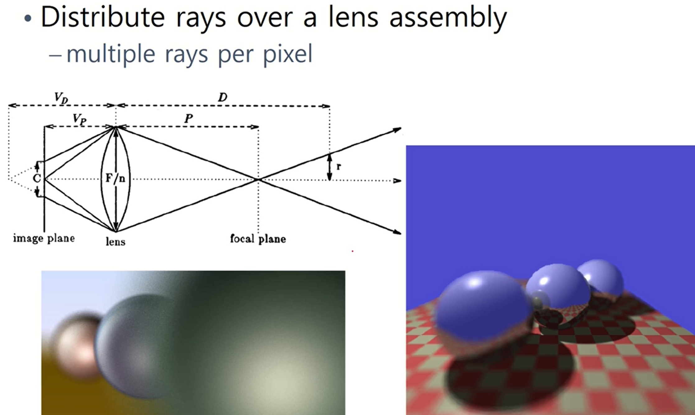 - 초점 밖에 있거나 안에 있는 물체는 세 ray 값들의 평균이 된다.