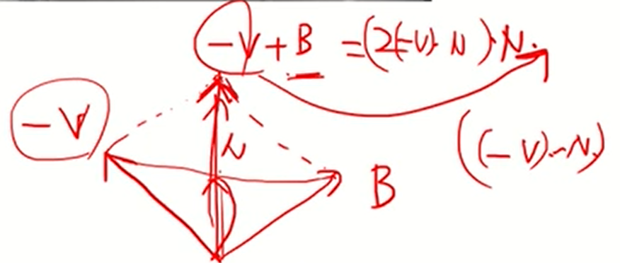 - v1, v2가 이루는 평면의 normal vector를 가지고 ray와 dot product해서 각도를 구하는 것이다.