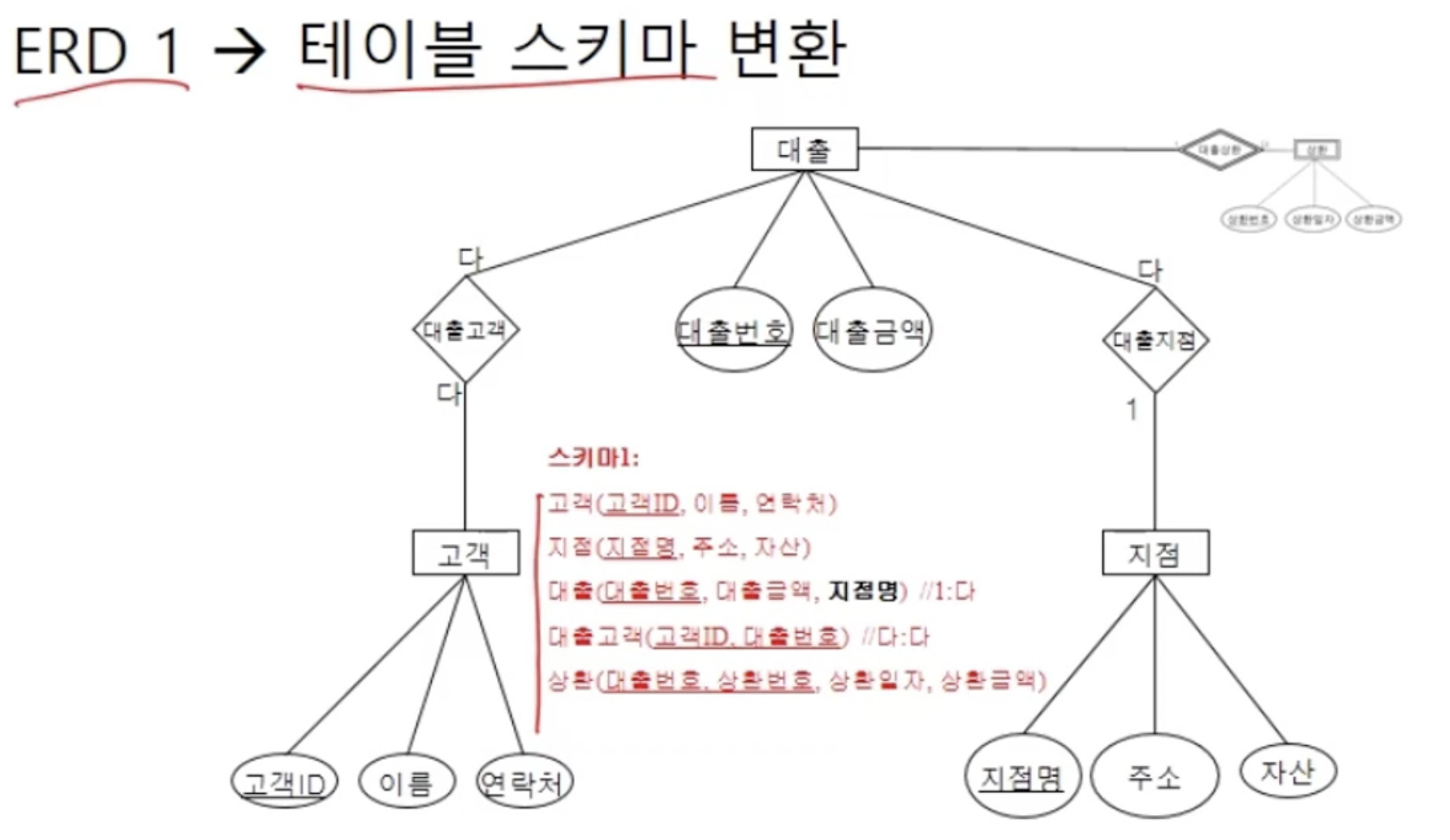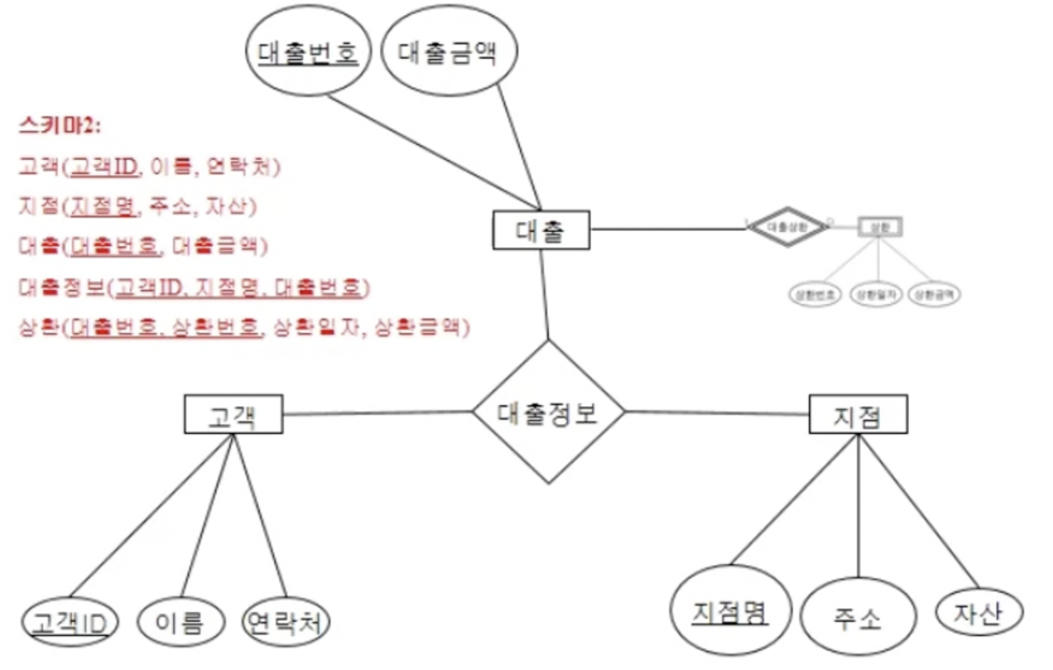 - 여기서는 대출 테이블과 대출지점 테이블의 통합이 이루어져 더 좋은 스키마가 도출되었다.