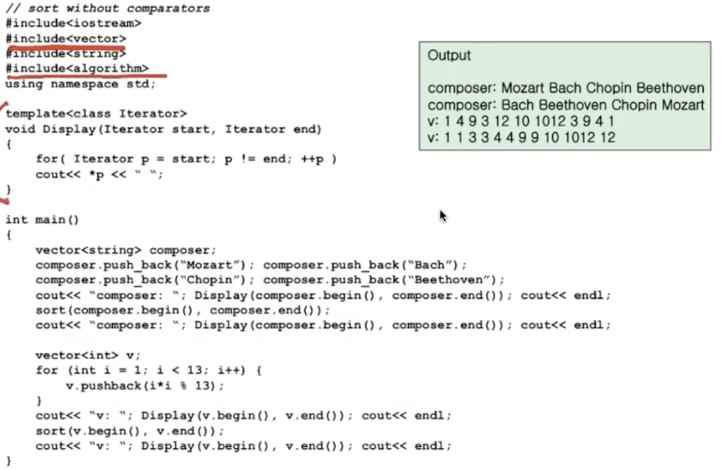 - 위의 예시는 built in type의 sort를 수행하였는데 만약 내가 원하는 타입에서 동작하게 하려면 어떻게 해야 할까?